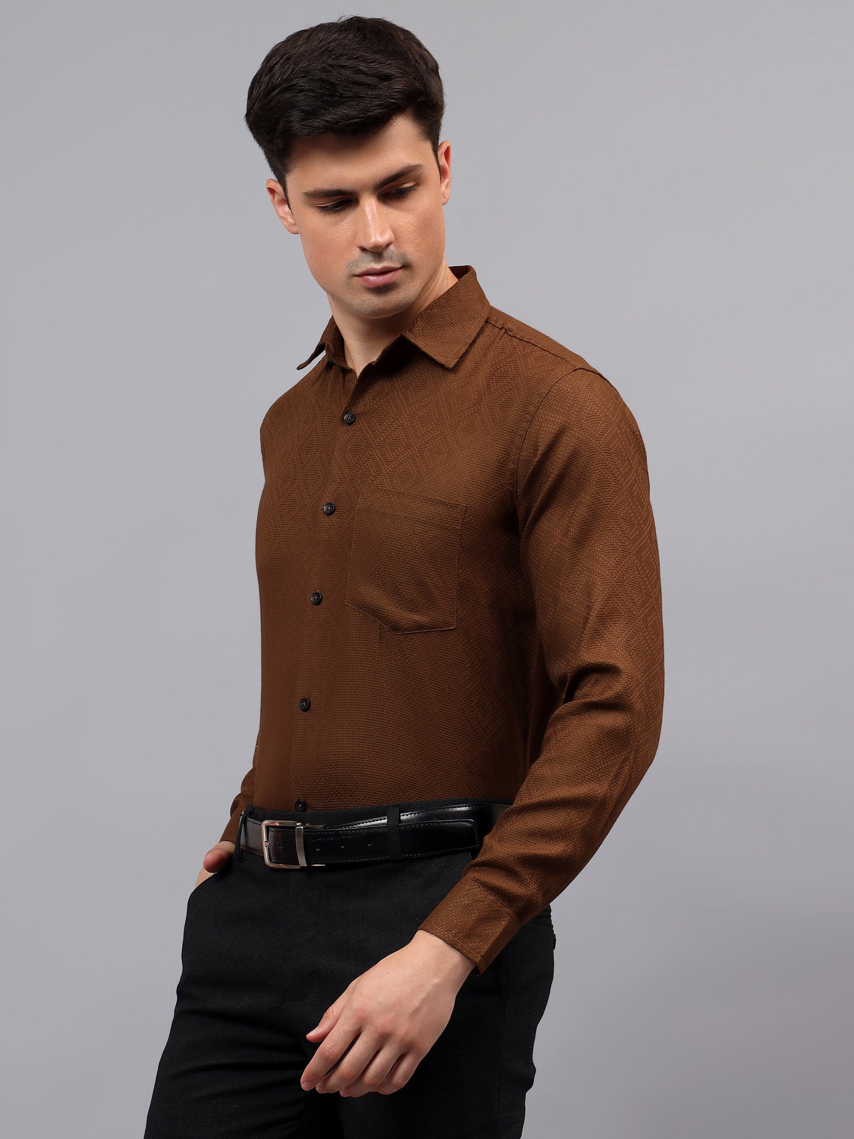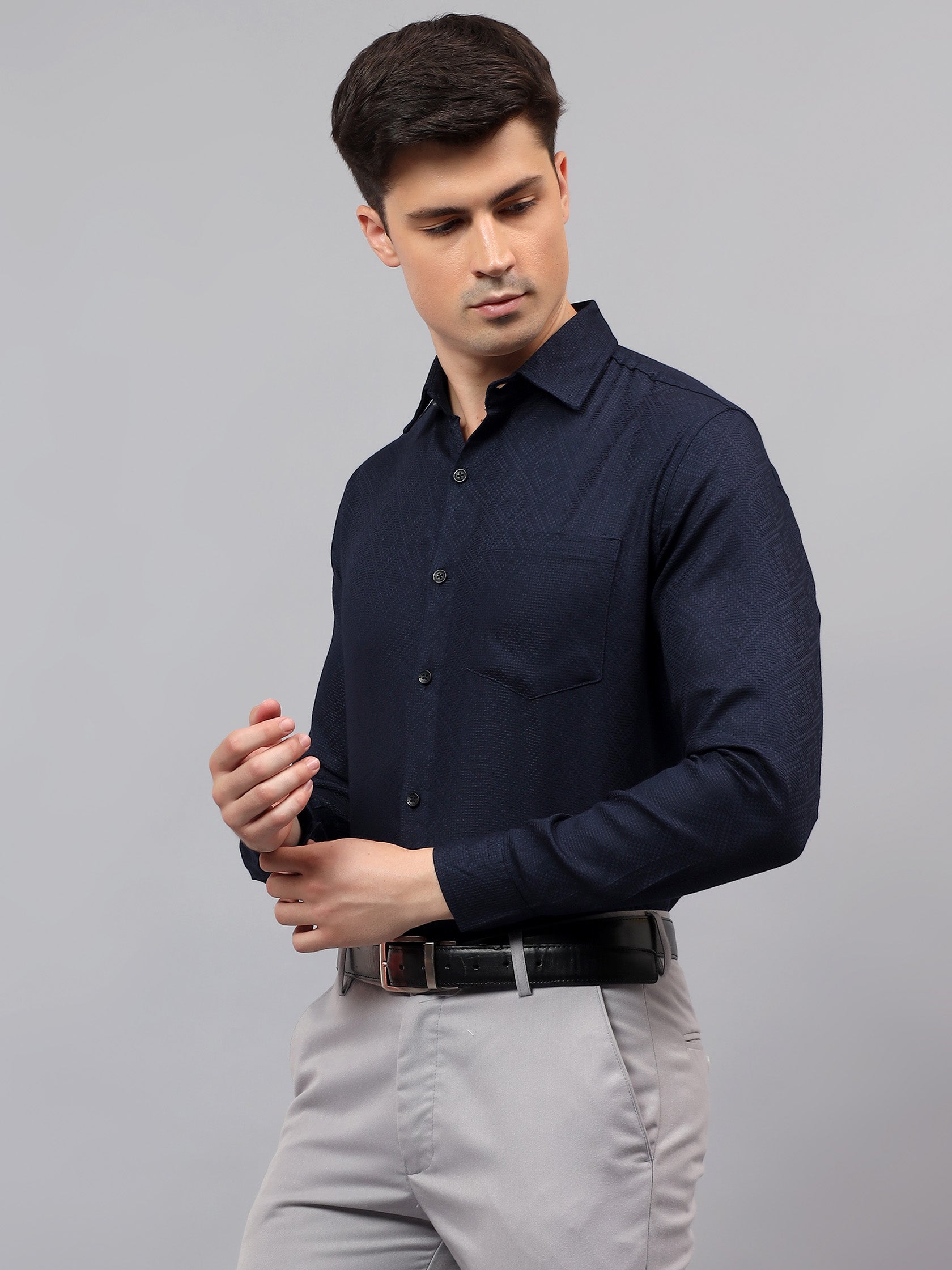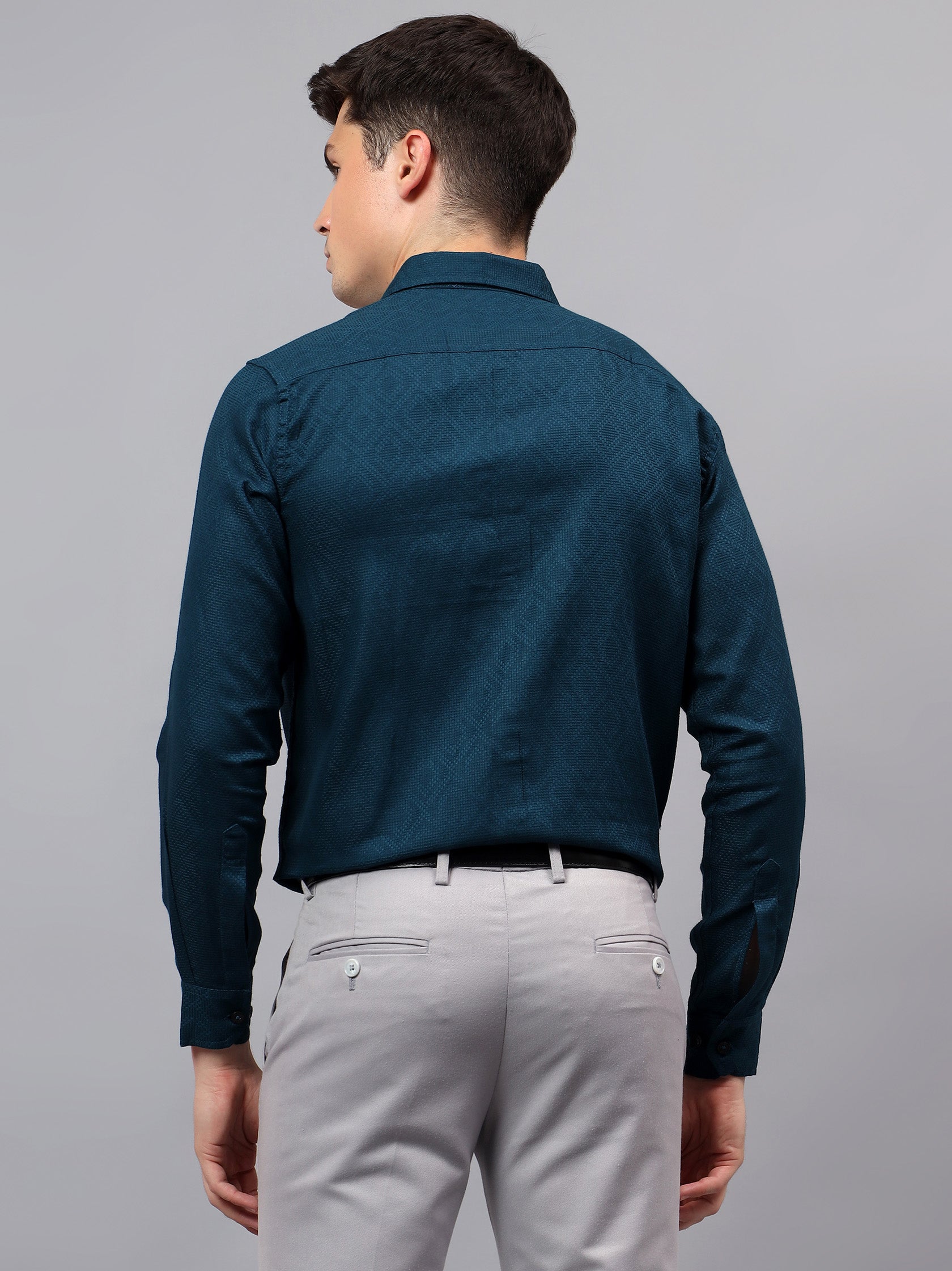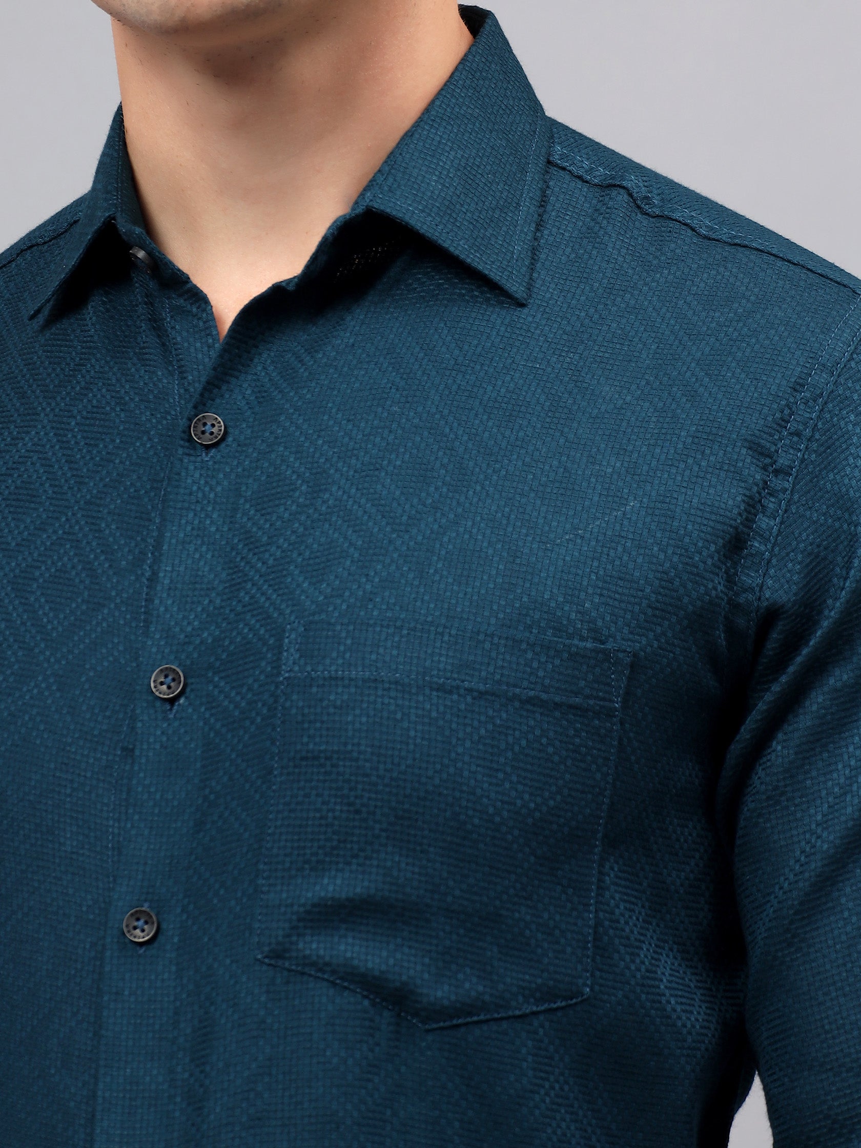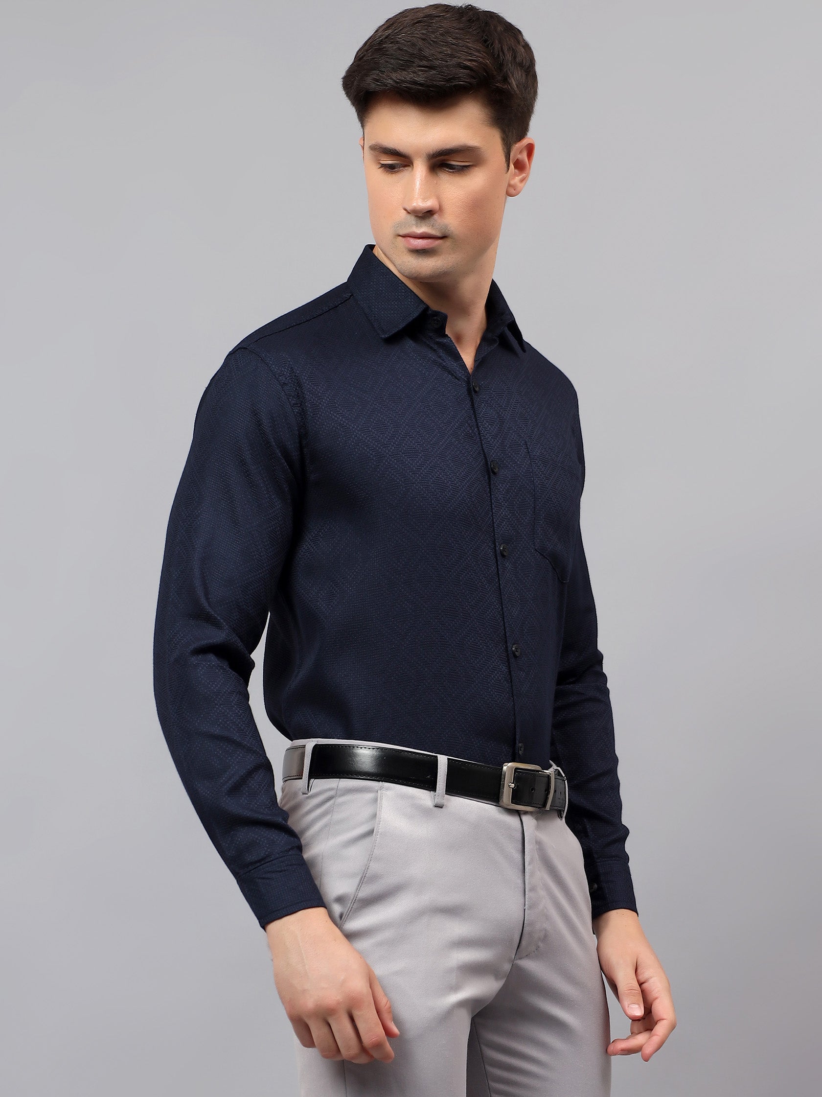 Upgrade your wardrobe with the Apektra Men's Regular Fit Full Sleeve Shirt, designed for both casual and semi-formal occasions. Crafted from a premium cotton, this shirt offers superior comfort, breathability, and durability. The sleek solid color with a stylish geometric pattern adds a touch of sophistication to your look.