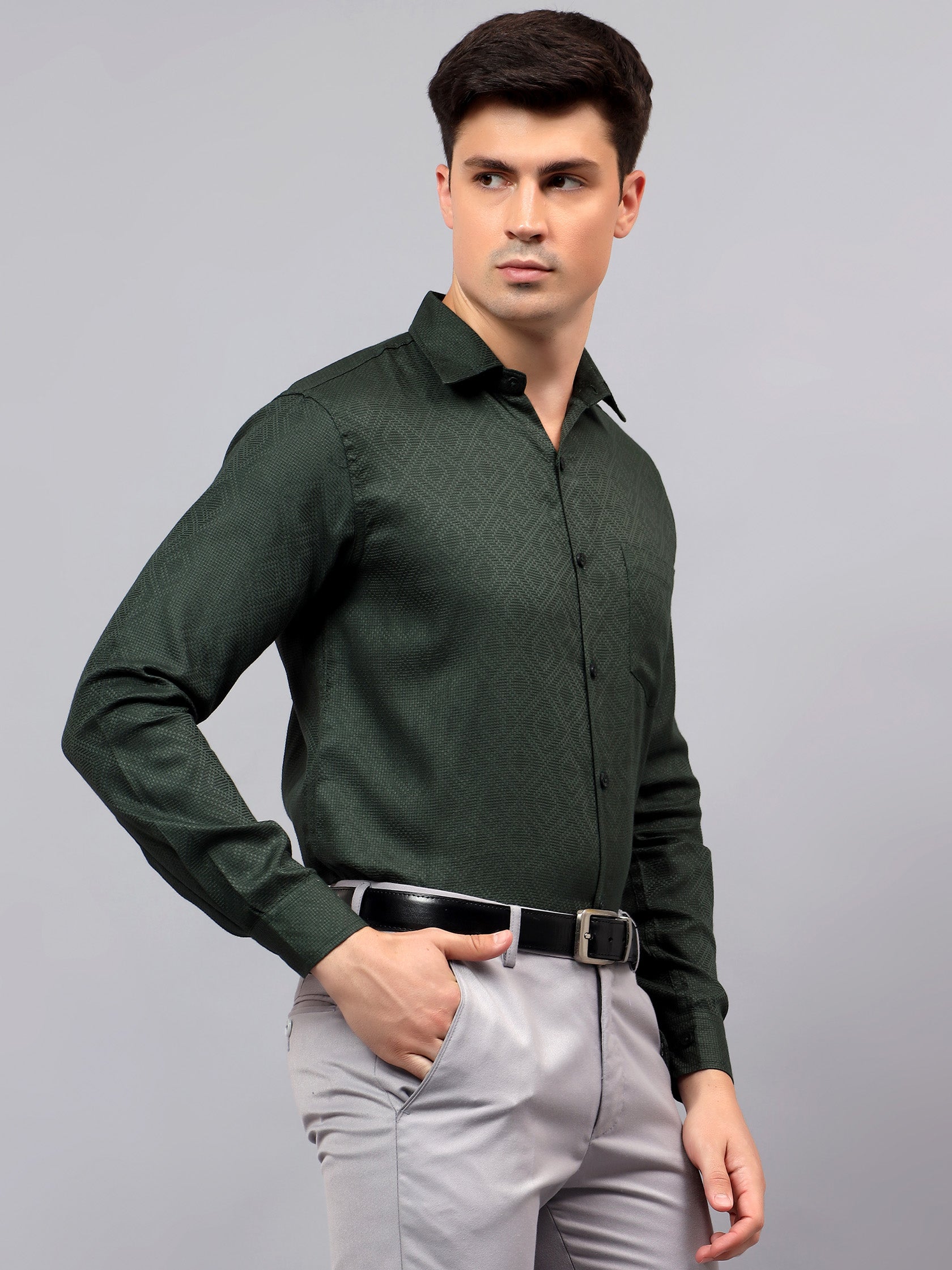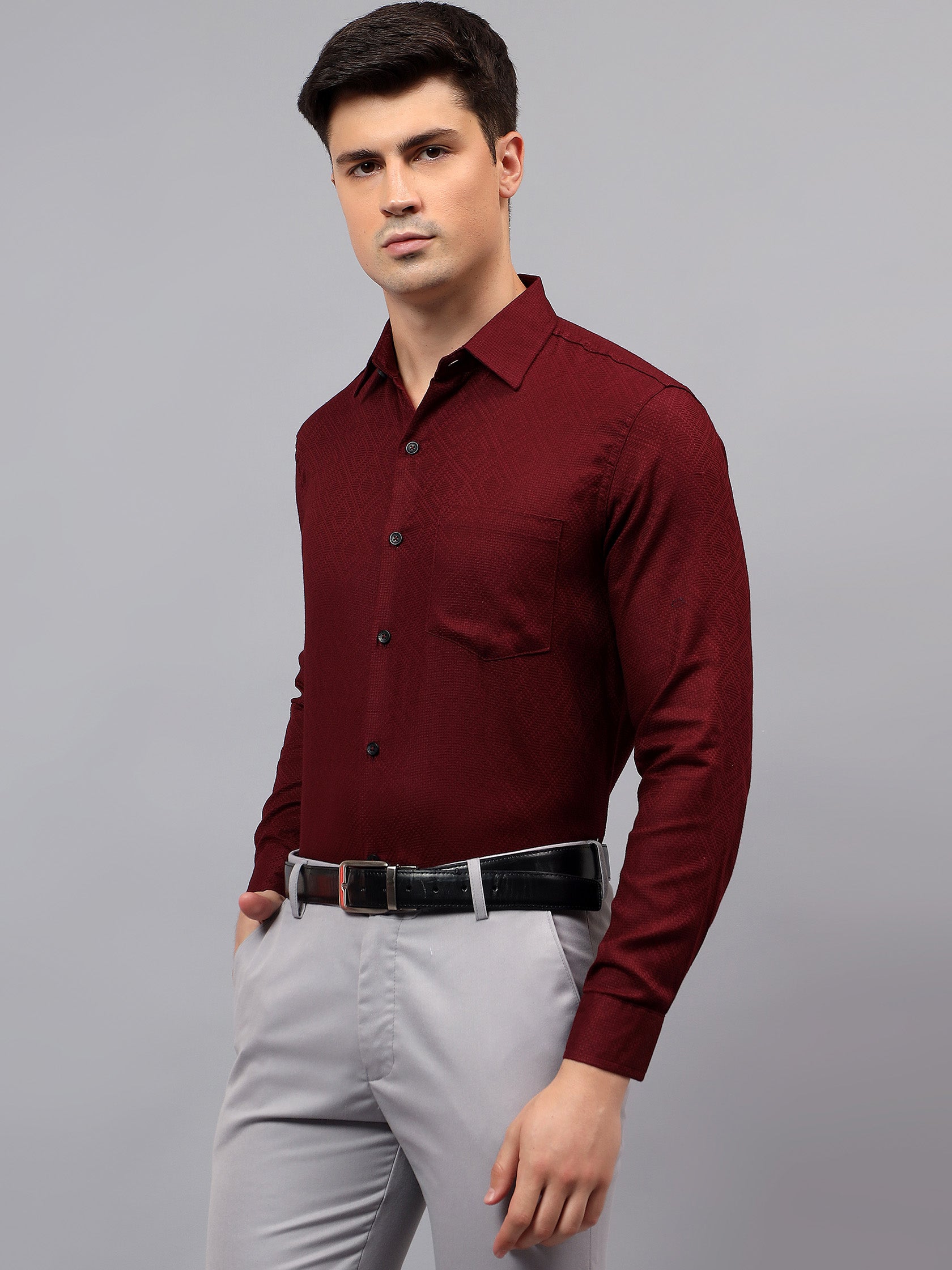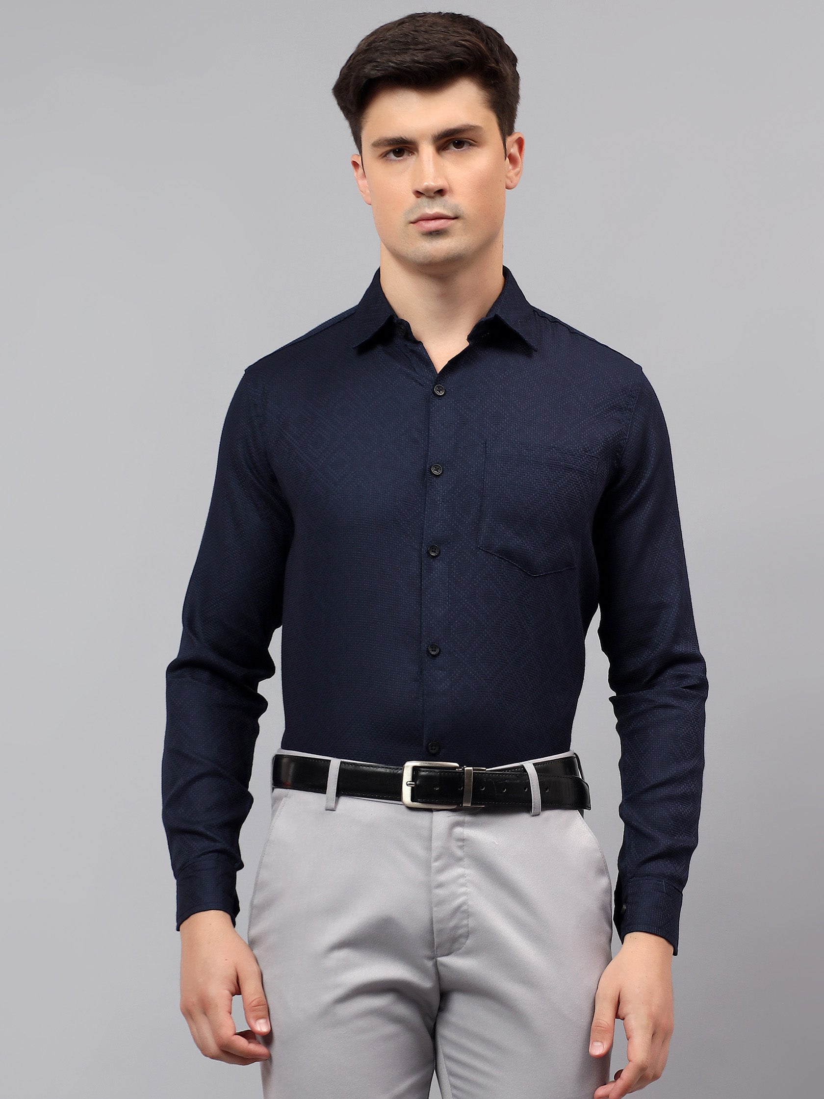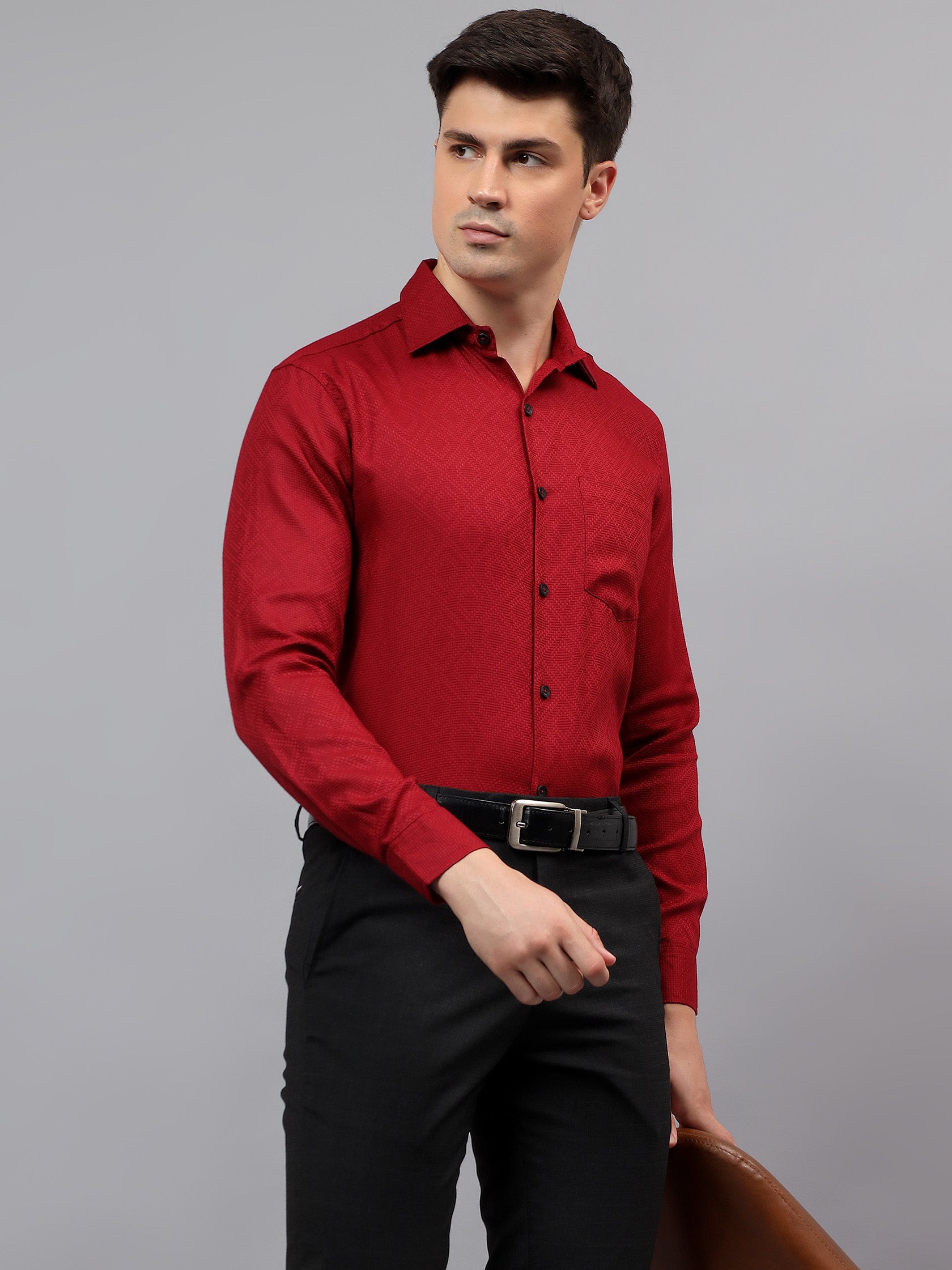 Upgrade your wardrobe with the Apektra Men's Regular Fit Full Sleeve Shirt, designed for both casual and semi-formal occasions. Crafted from a premium cotton, this shirt offers superior comfort, breathability, and durability. The sleek solid color with a stylish geometric pattern adds a touch of sophistication to your look.