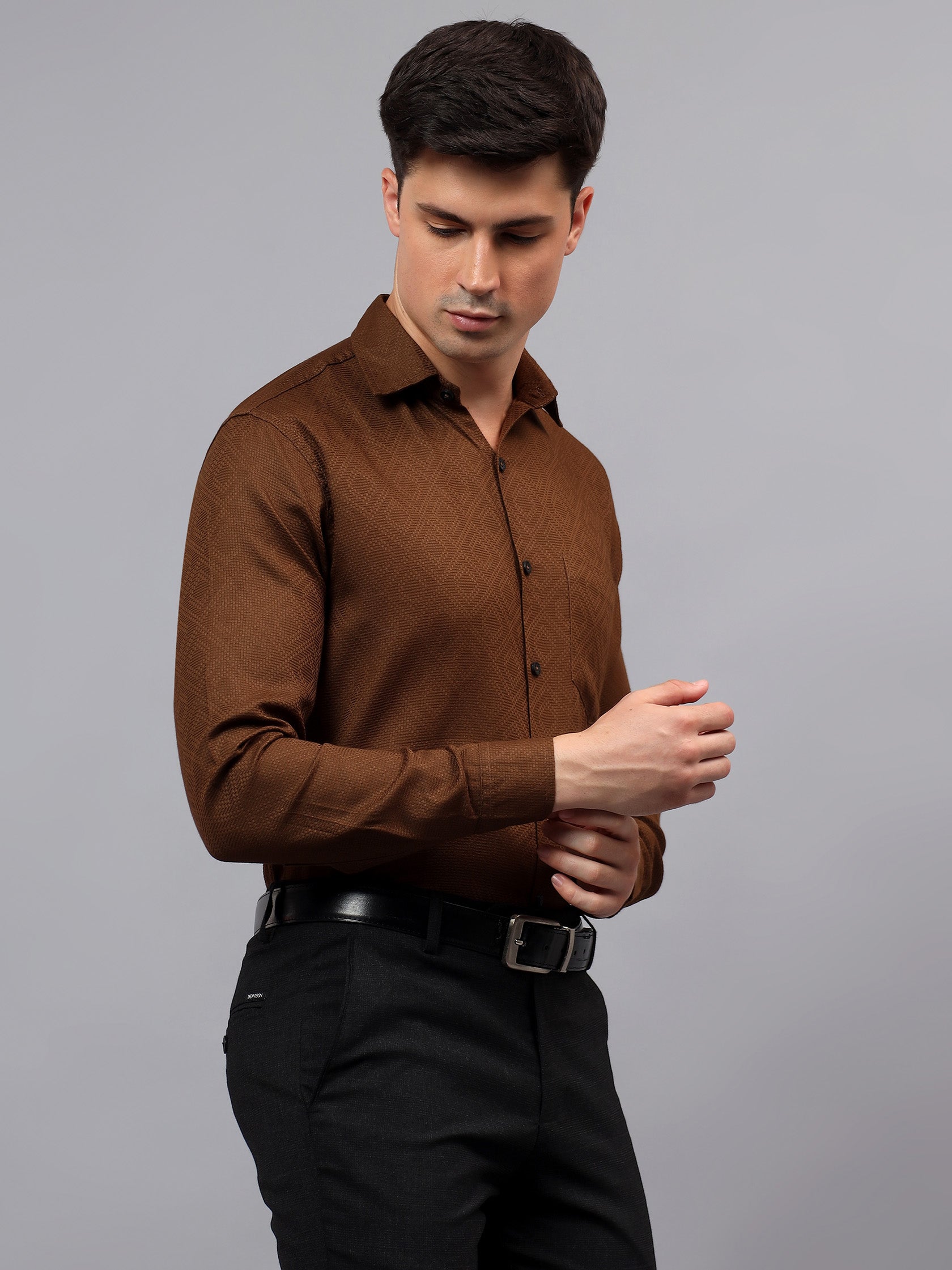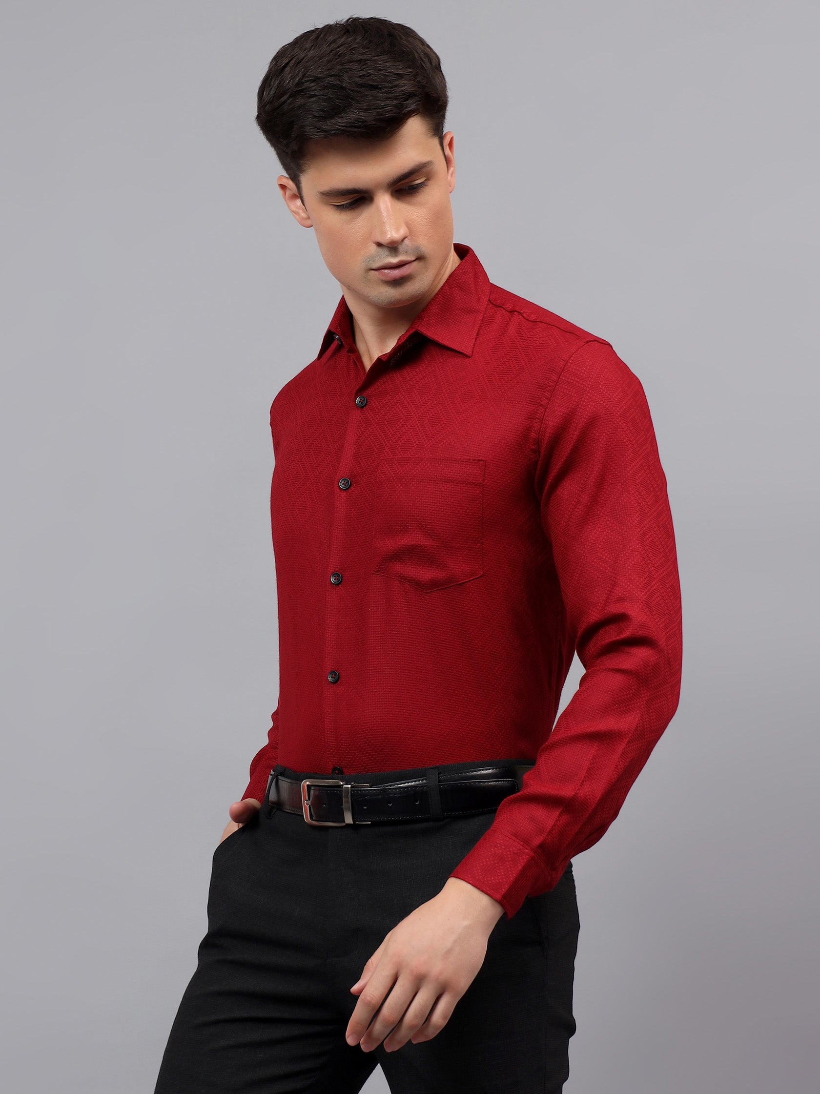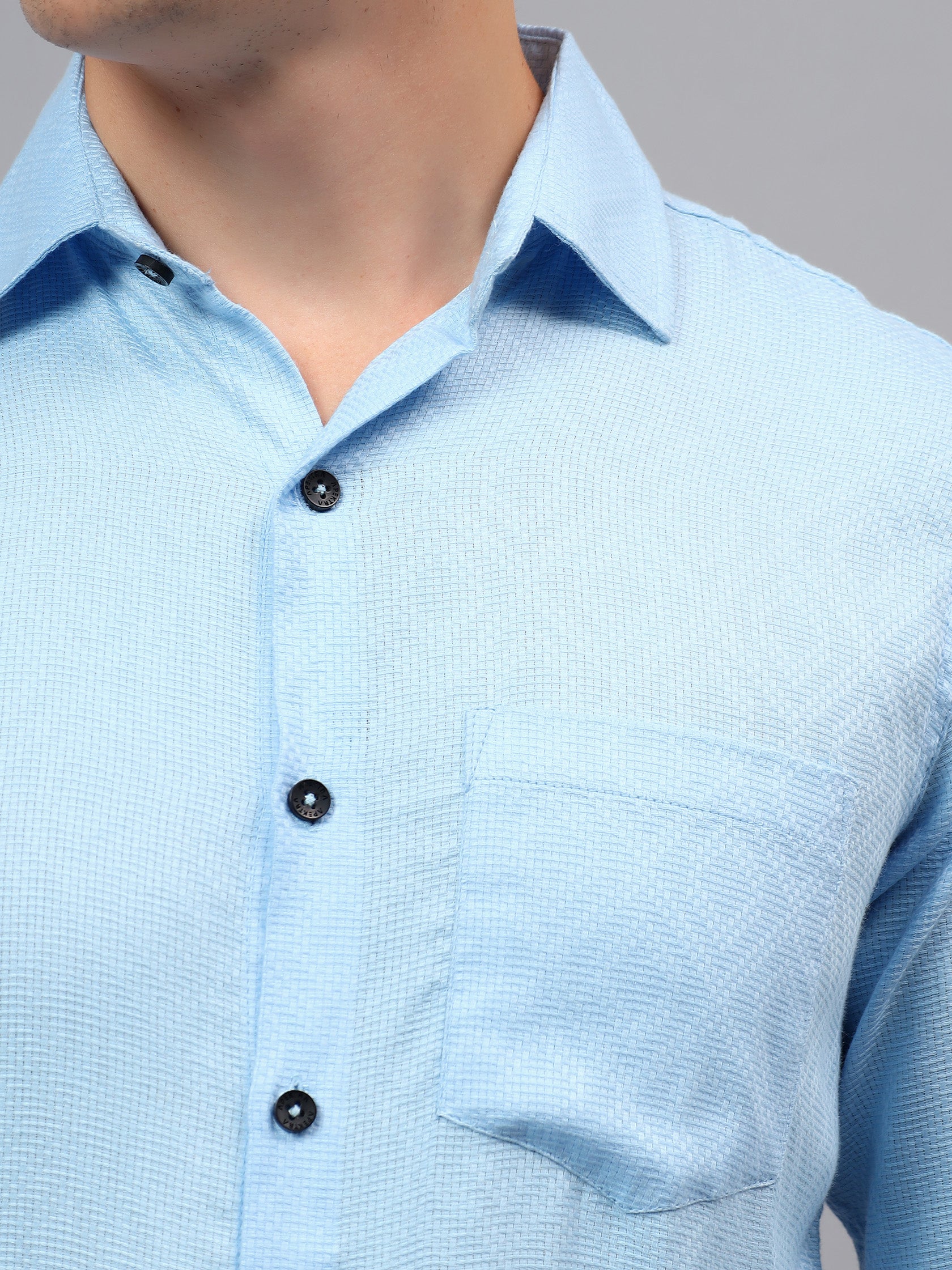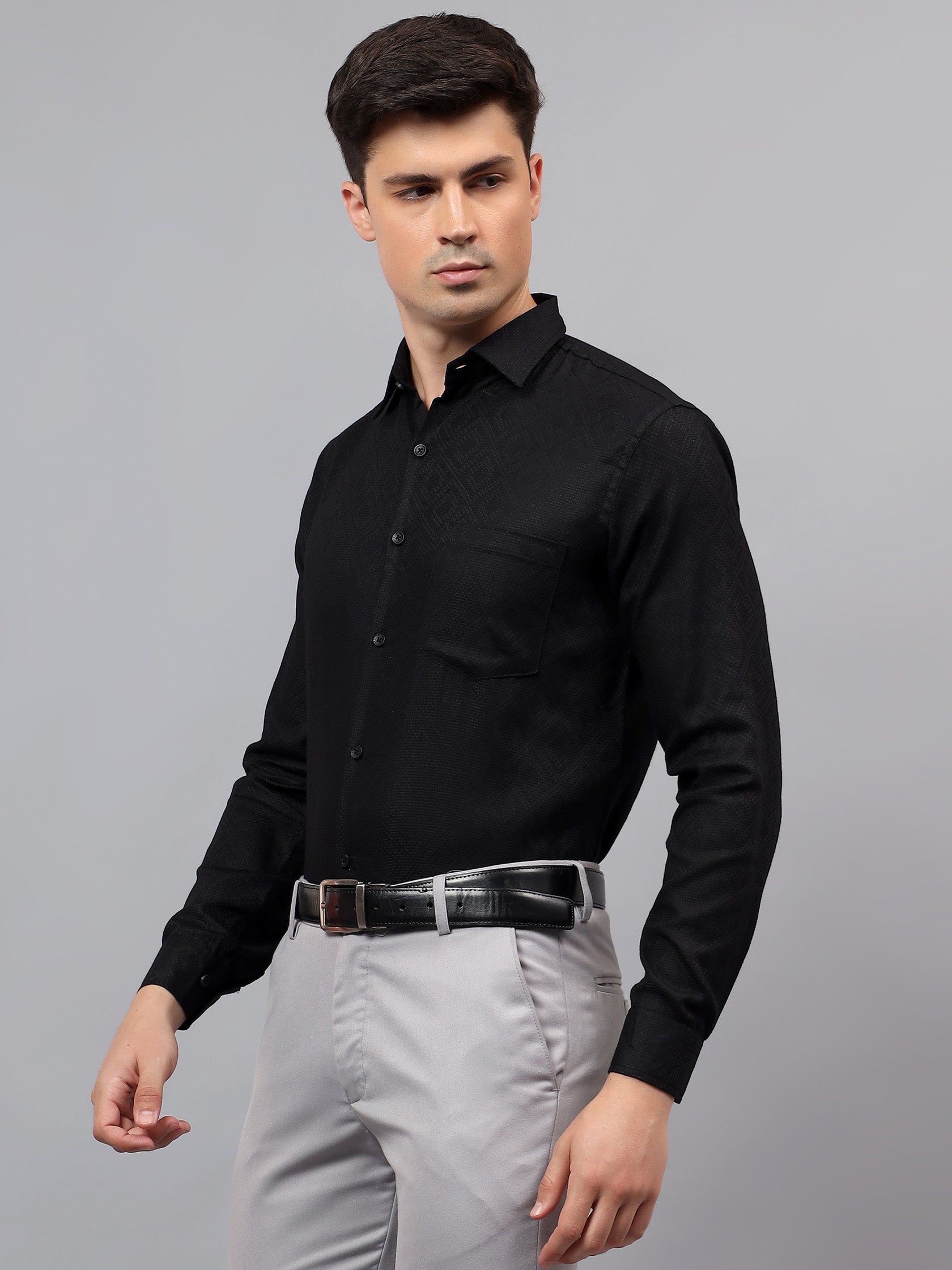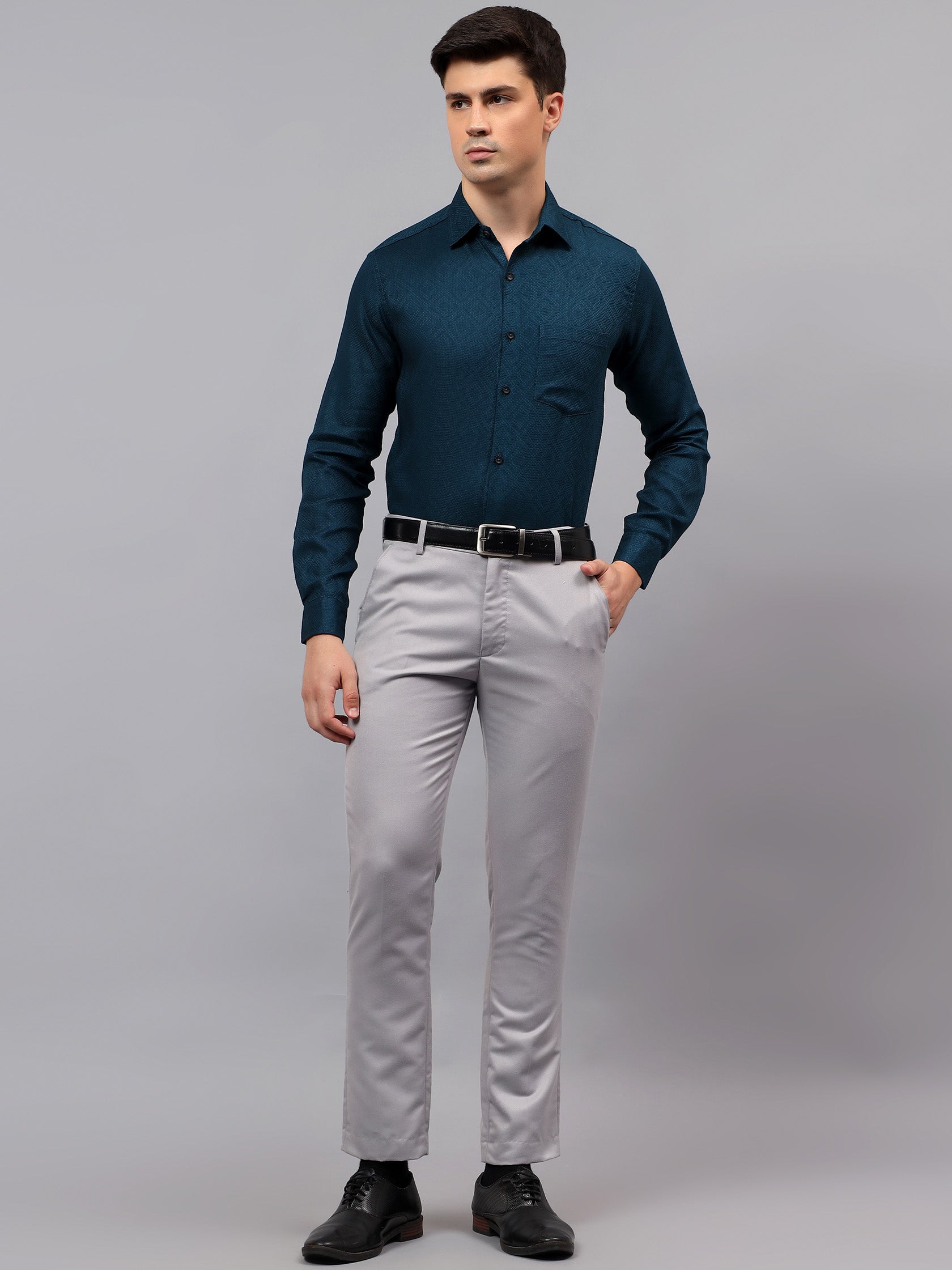 Upgrade your wardrobe with the Apektra Men's Regular Fit Full Sleeve Shirt, designed for both casual and semi-formal occasions. Crafted from a premium cotton, this shirt offers superior comfort, breathability, and durability. The sleek solid color with a stylish geometric pattern adds a touch of sophistication to your look.