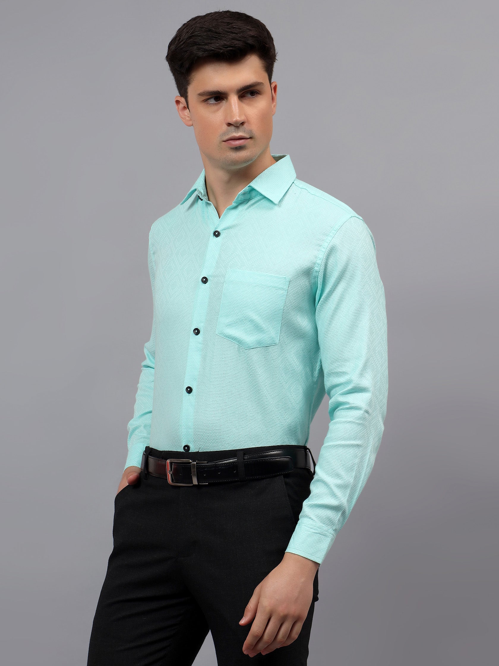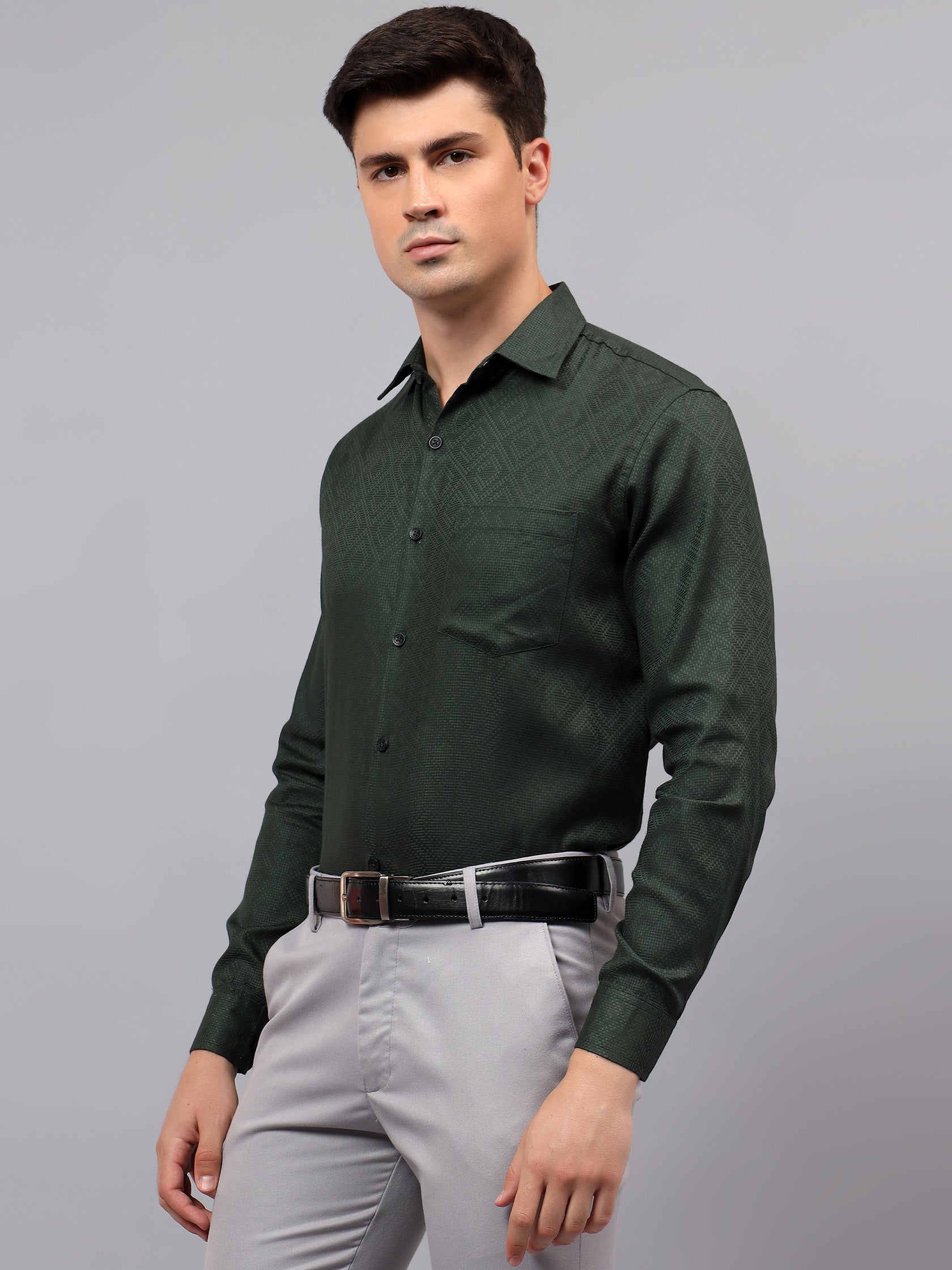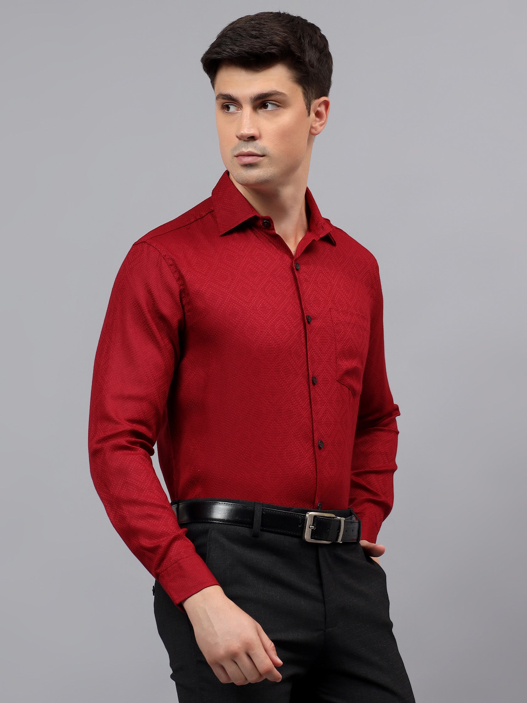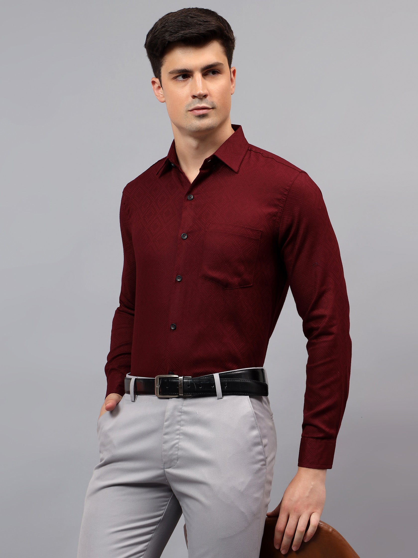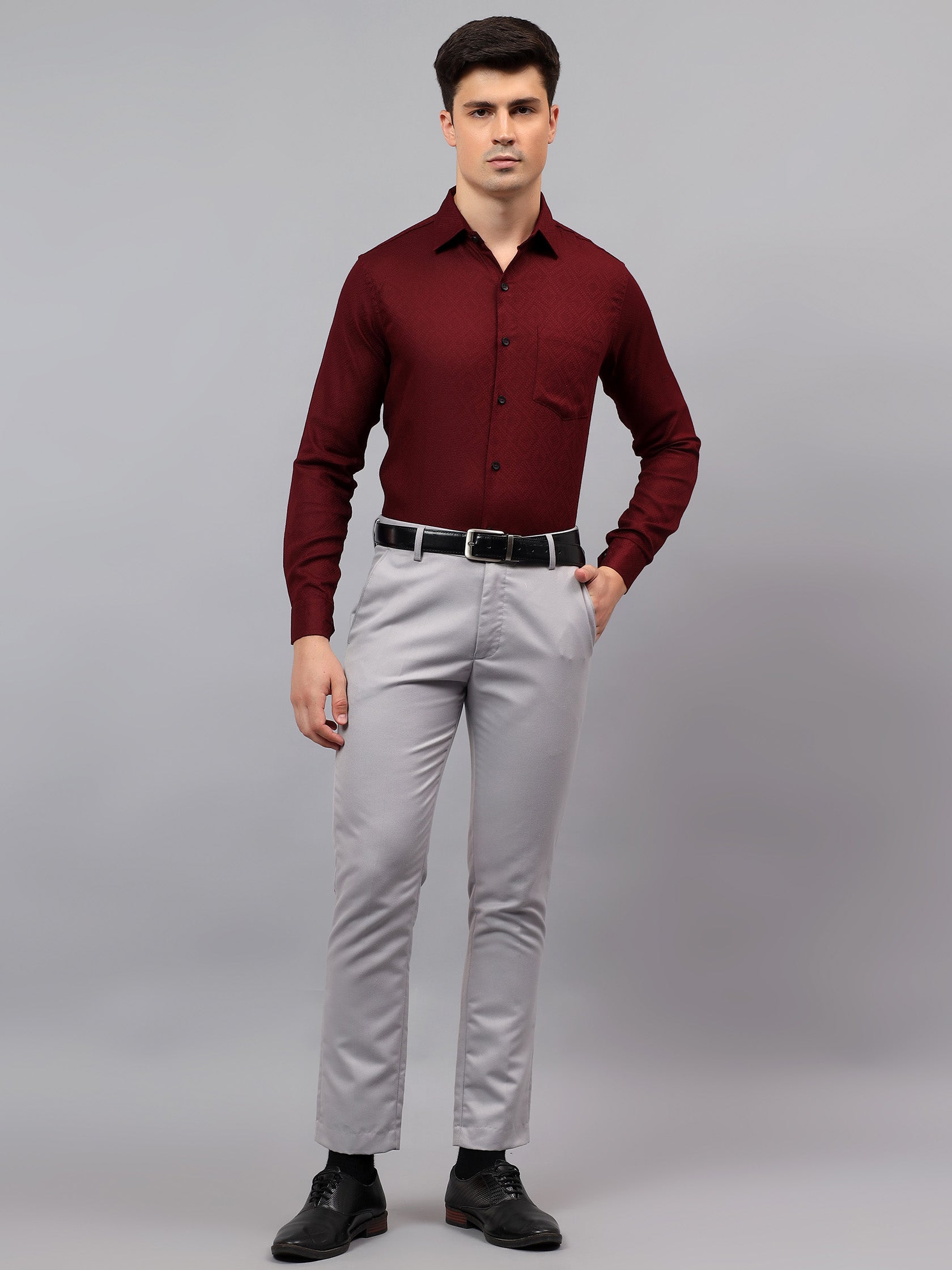 Upgrade your wardrobe with the Apektra Men's Regular Fit Full Sleeve Shirt, designed for both casual and semi-formal occasions. Crafted from a premium cotton, this shirt offers superior comfort, breathability, and durability. The sleek solid color with a stylish geometric pattern adds a touch of sophistication to your look.