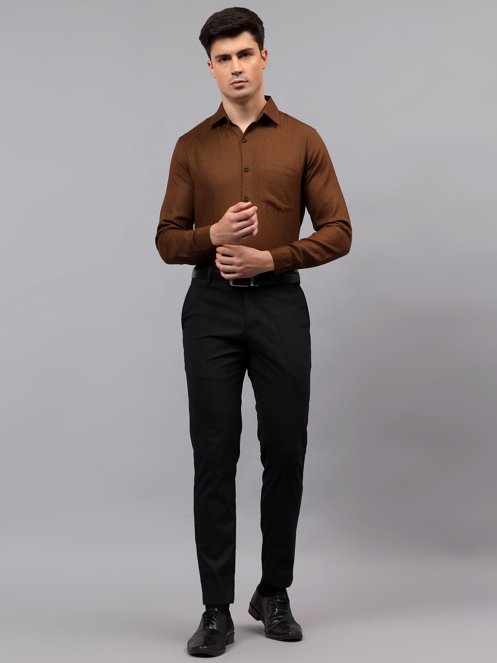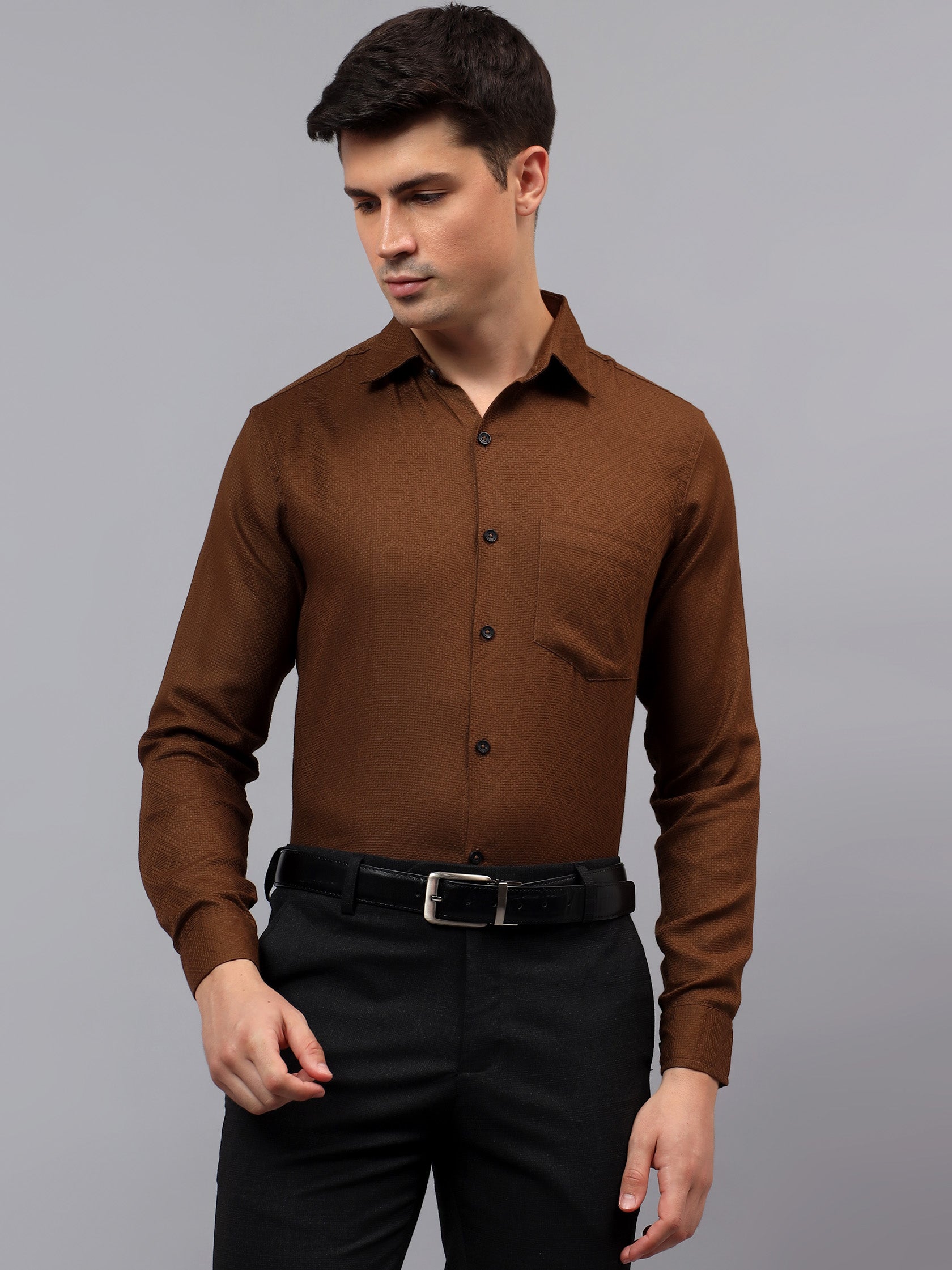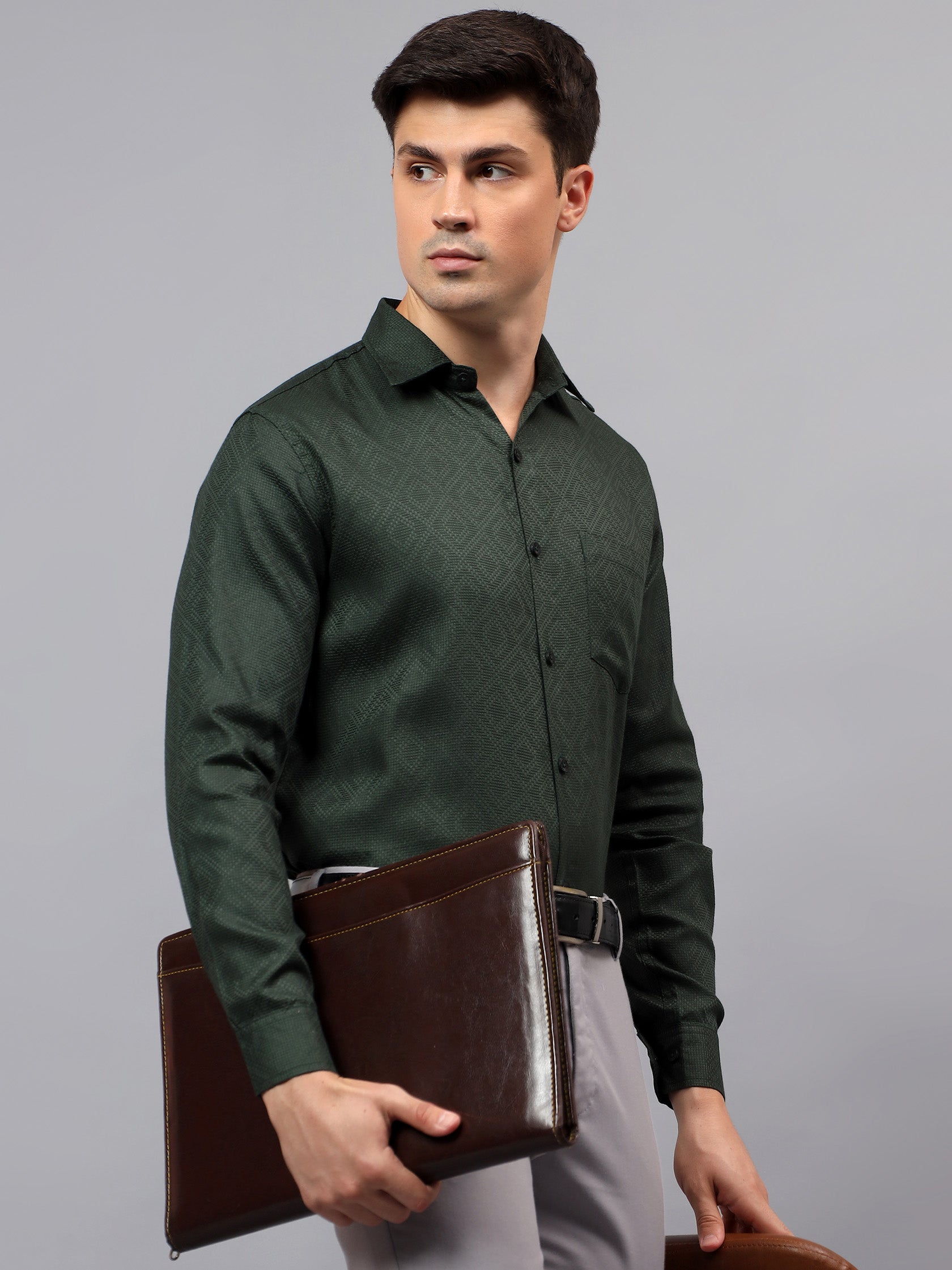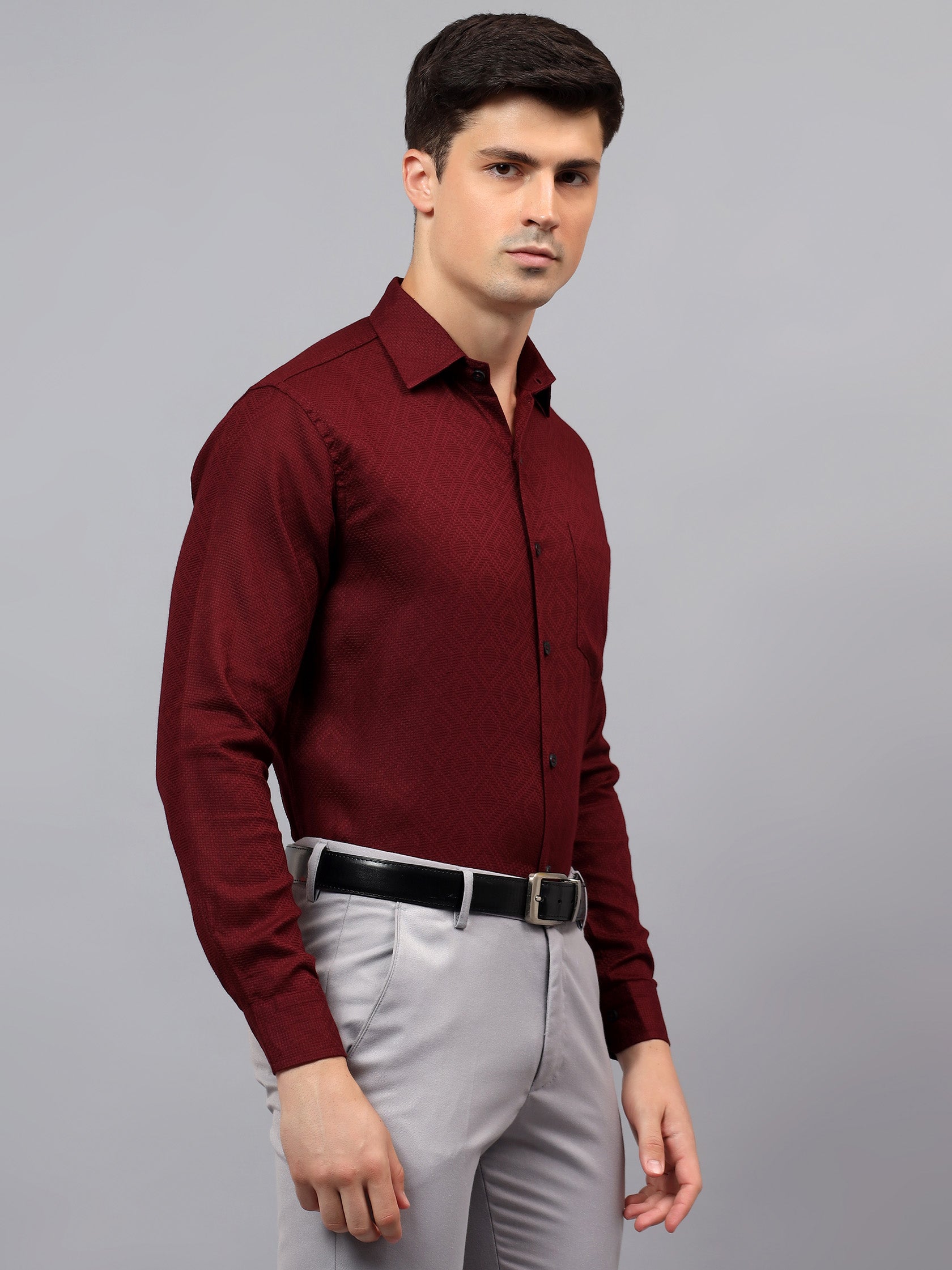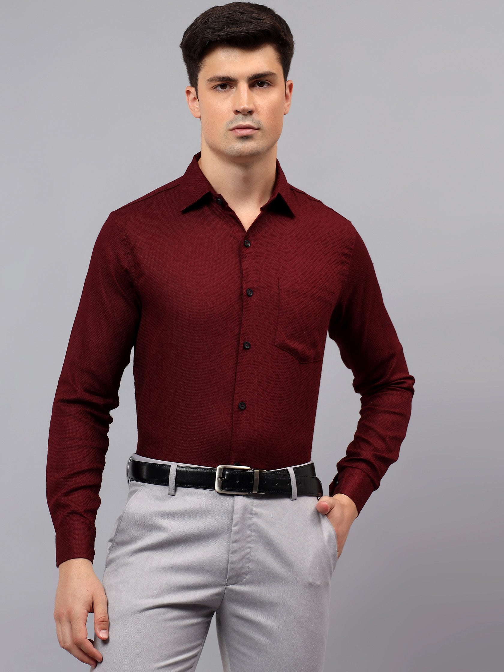 Upgrade your wardrobe with the Apektra Men's Regular Fit Full Sleeve Shirt, designed for both casual and semi-formal occasions. Crafted from a premium cotton, this shirt offers superior comfort, breathability, and durability. The sleek solid color with a stylish geometric pattern adds a touch of sophistication to your look.