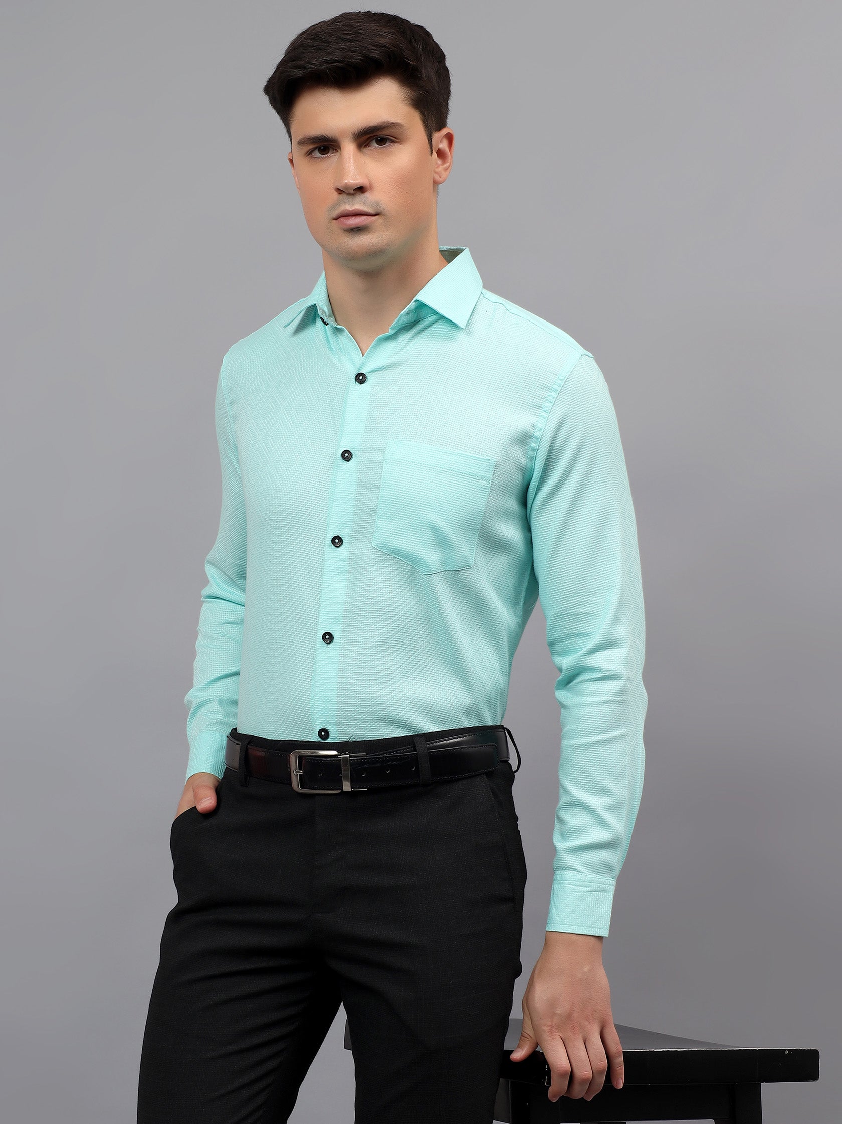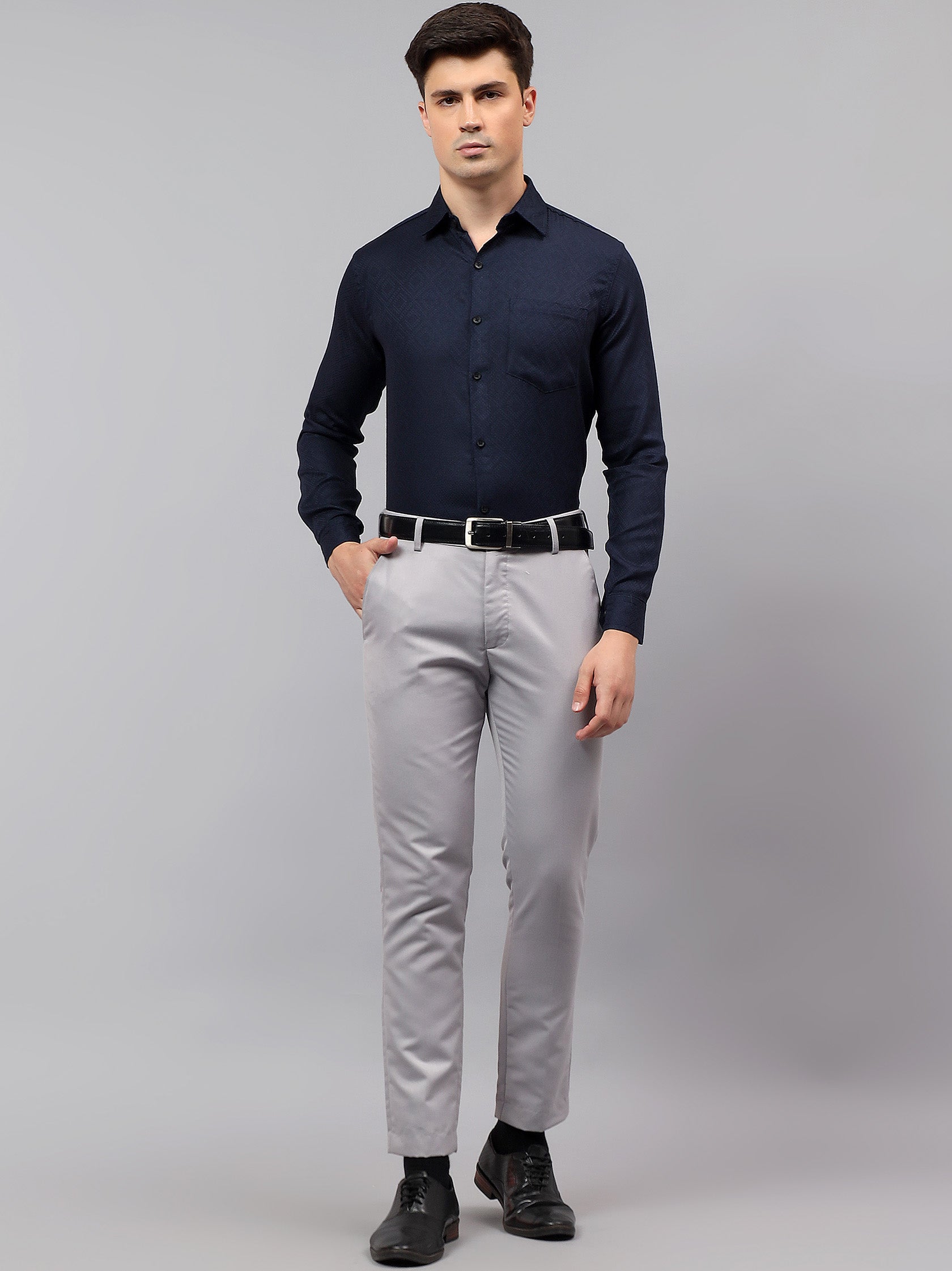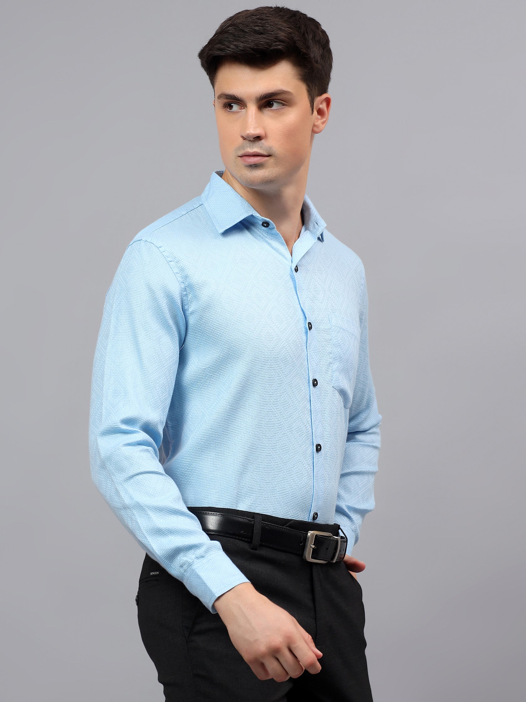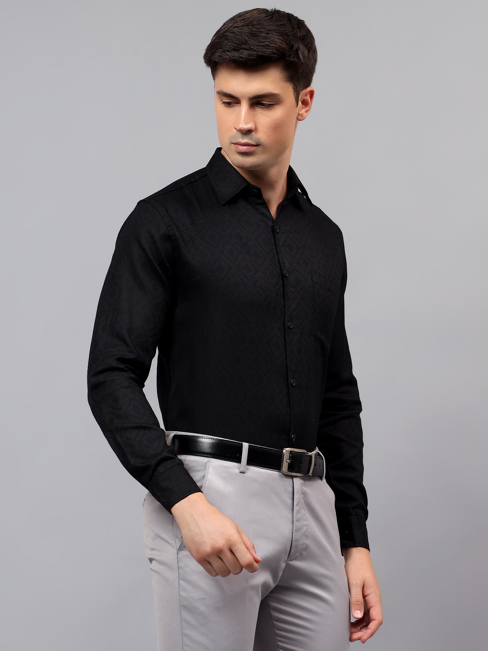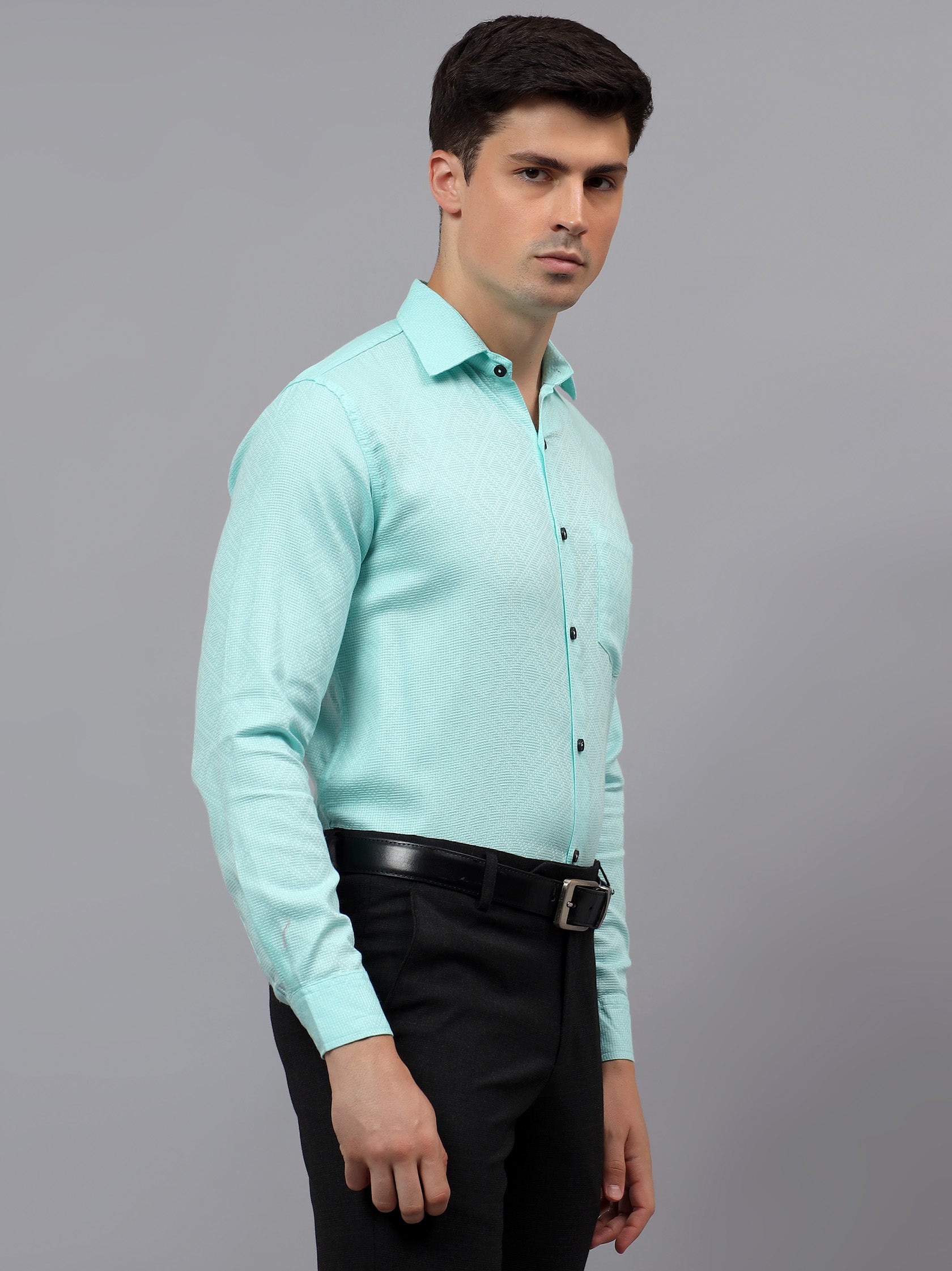 Upgrade your wardrobe with the Apektra Men's Regular Fit Full Sleeve Shirt, designed for both casual and semi-formal occasions. Crafted from a premium cotton, this shirt offers superior comfort, breathability, and durability. The sleek solid color with a stylish geometric pattern adds a touch of sophistication to your look.
