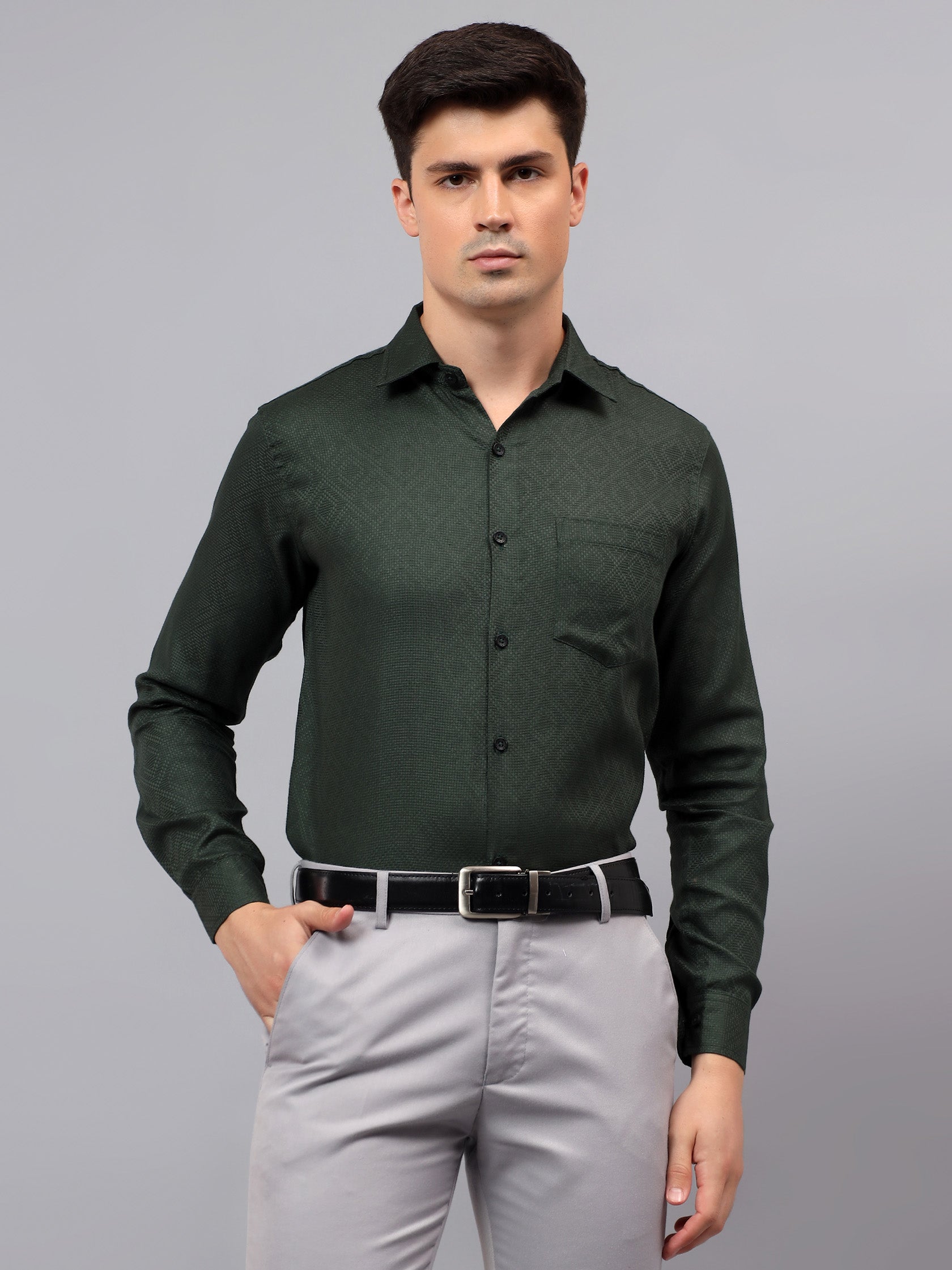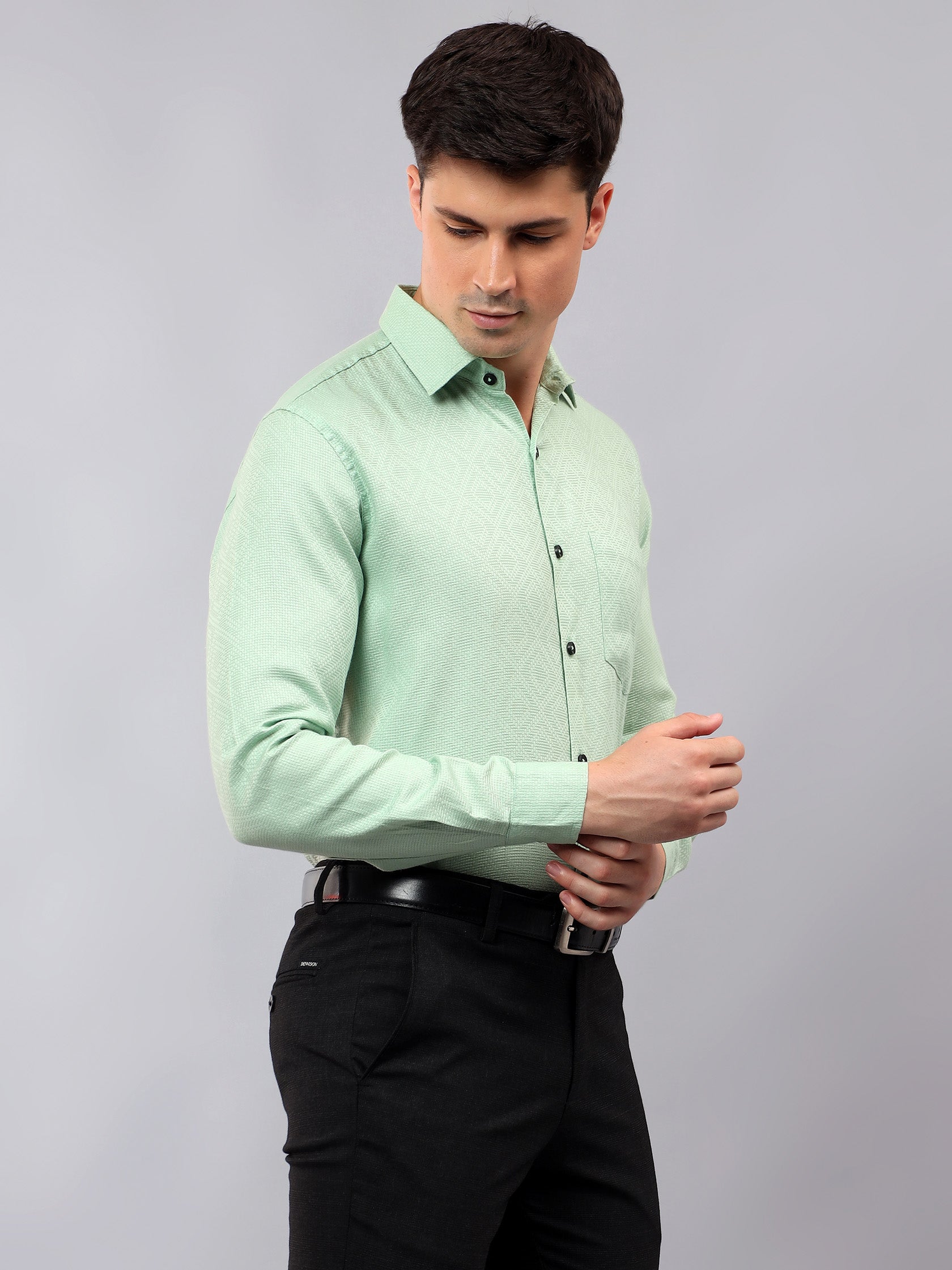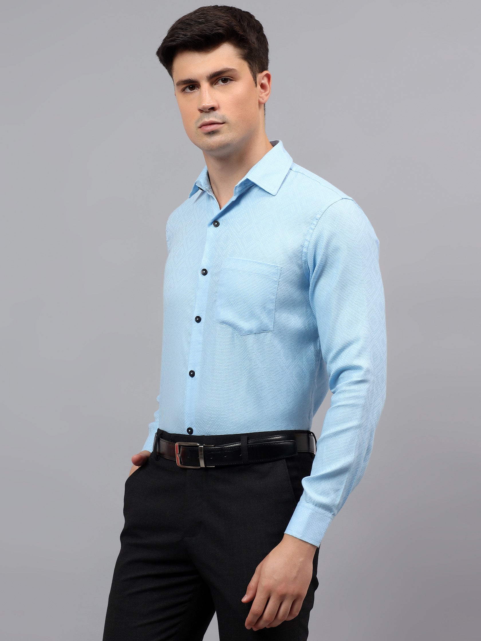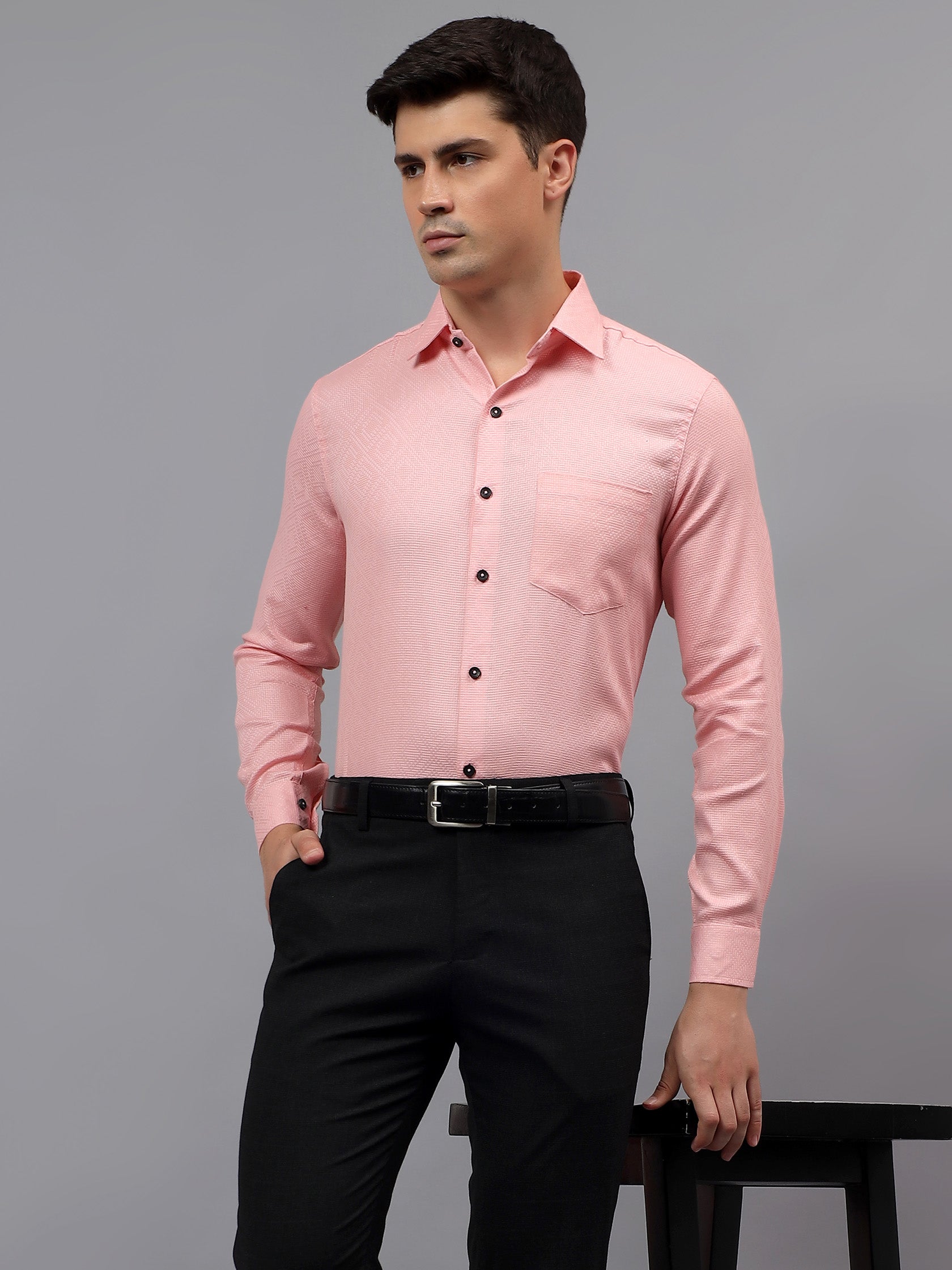 Upgrade your wardrobe with the Apektra Men's Regular Fit Full Sleeve Shirt, designed for both casual and semi-formal occasions. Crafted from a premium cotton, this shirt offers superior comfort, breathability, and durability. The sleek solid color with a stylish geometric pattern adds a touch of sophistication to your look.