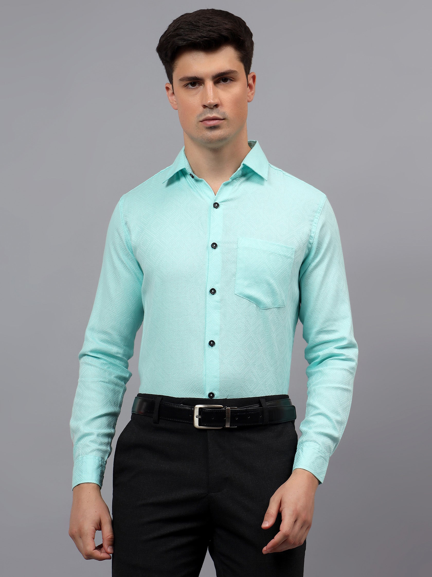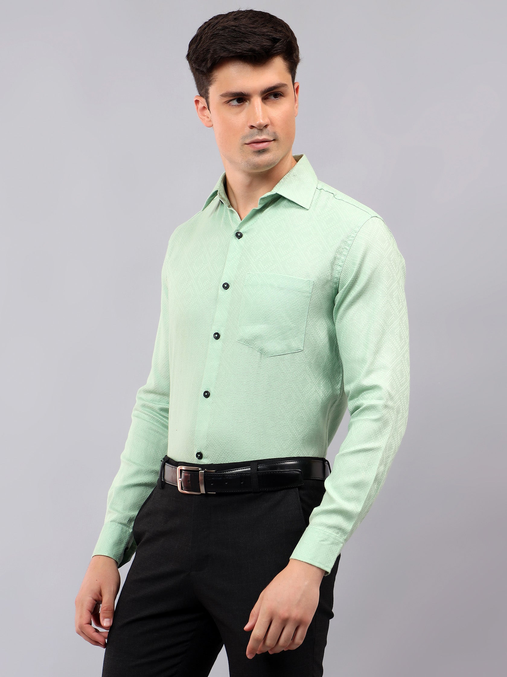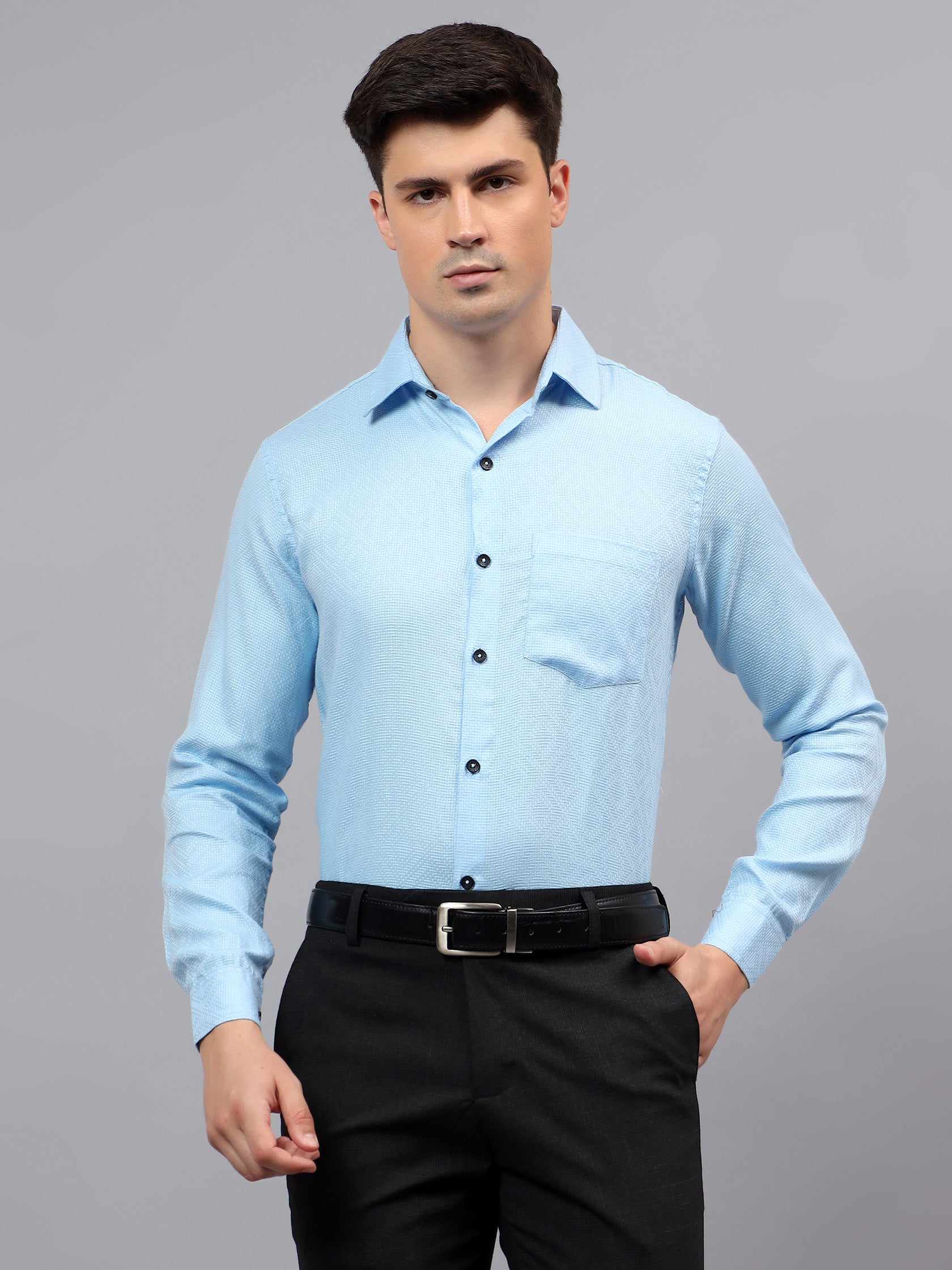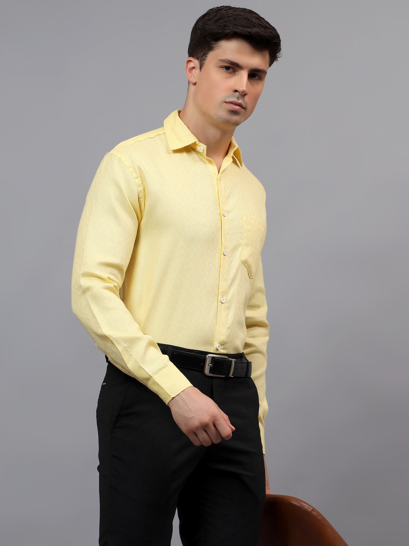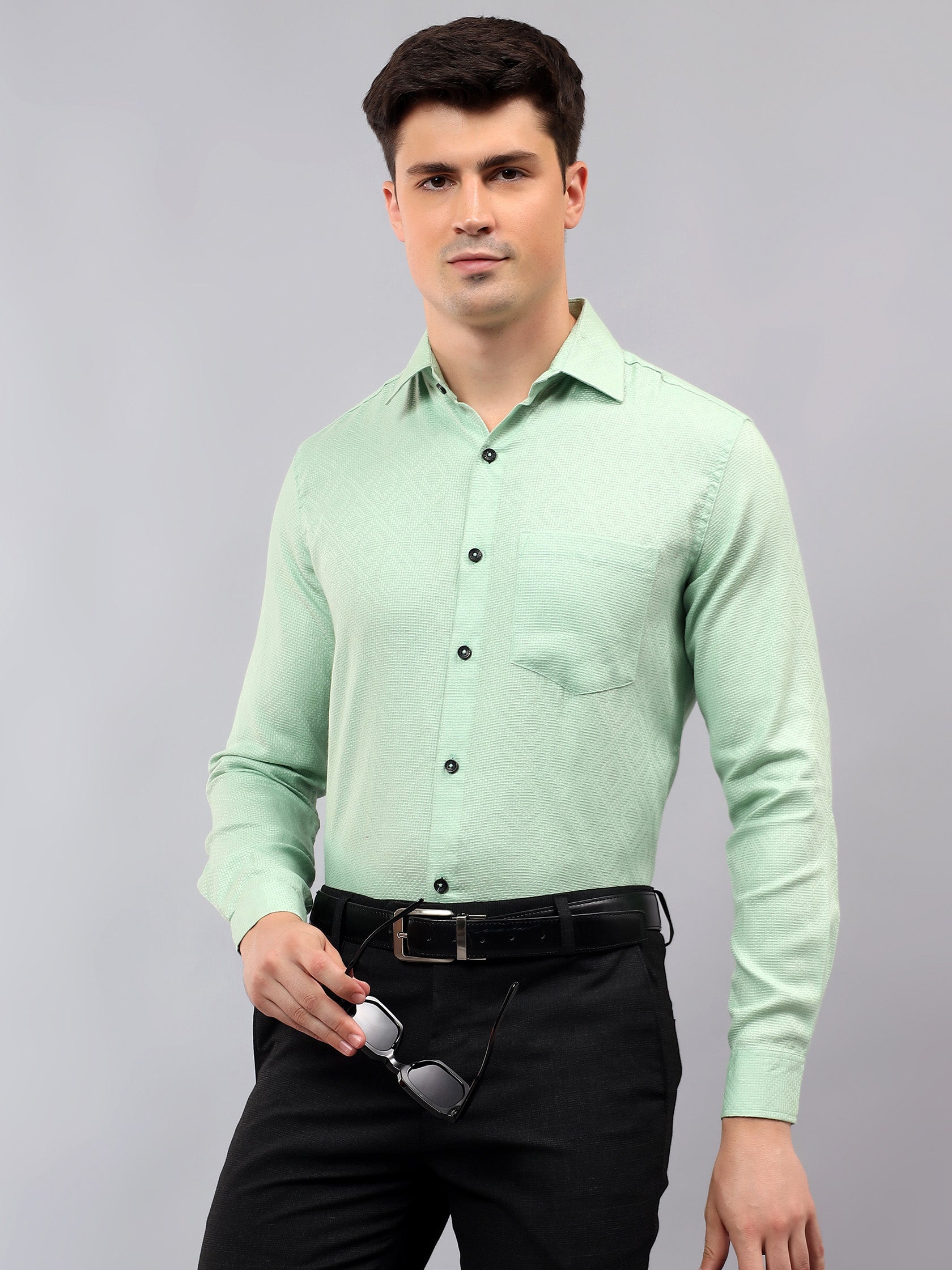 Upgrade your wardrobe with the Apektra Men's Regular Fit Full Sleeve Shirt, designed for both casual and semi-formal occasions. Crafted from a premium cotton, this shirt offers superior comfort, breathability, and durability. The sleek solid color with a stylish geometric pattern adds a touch of sophistication to your look.