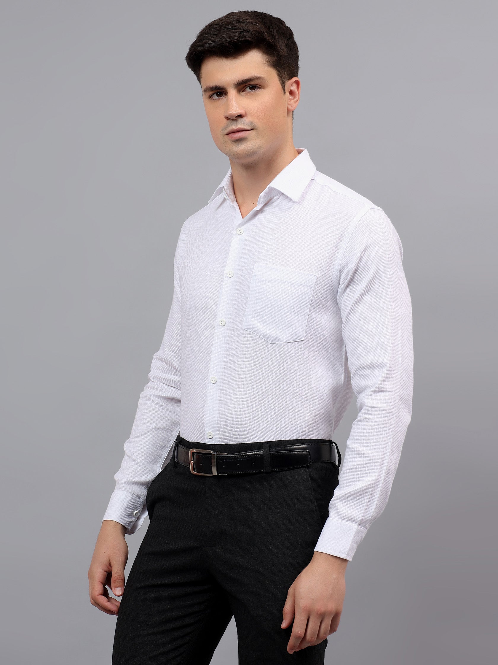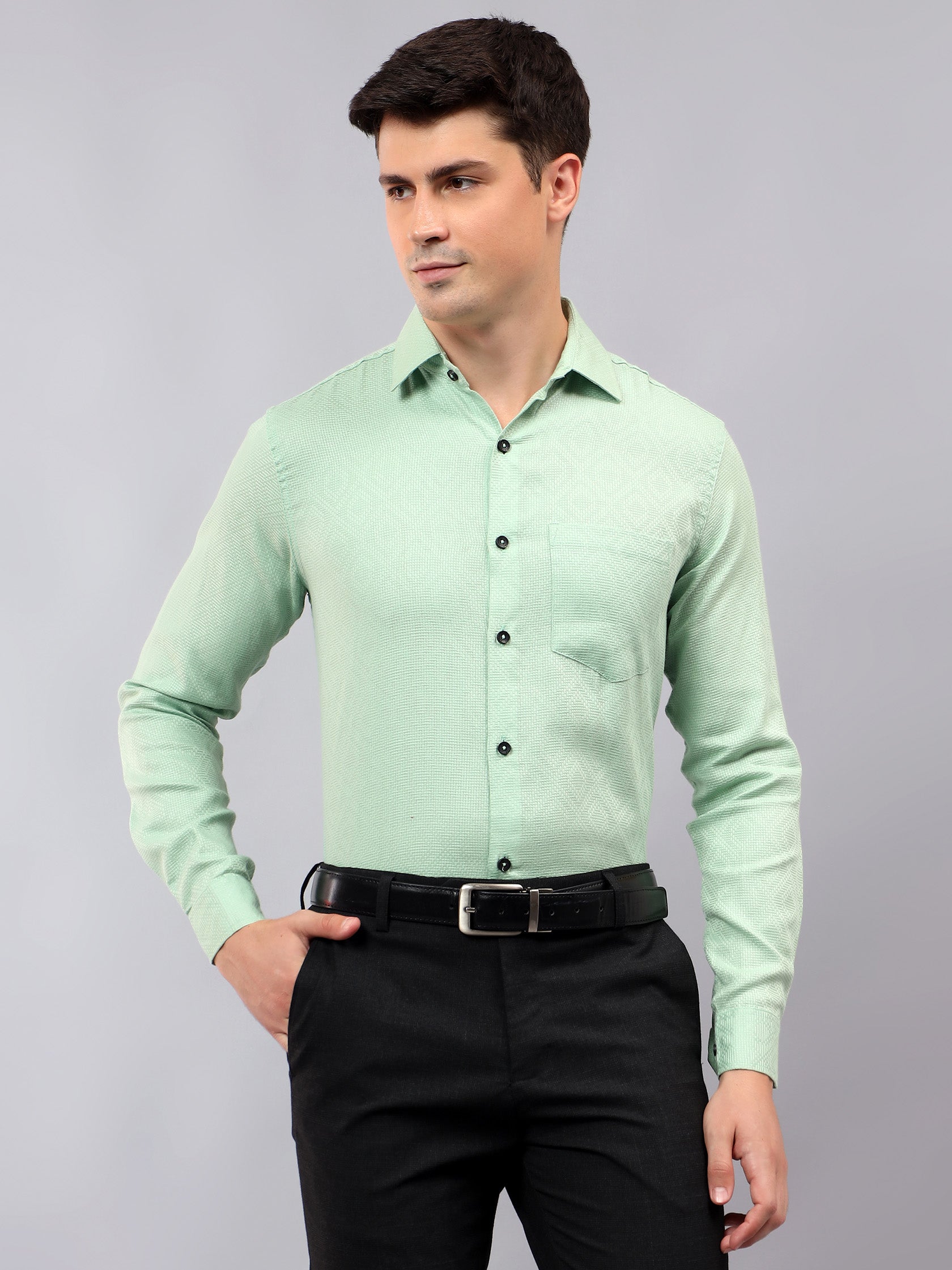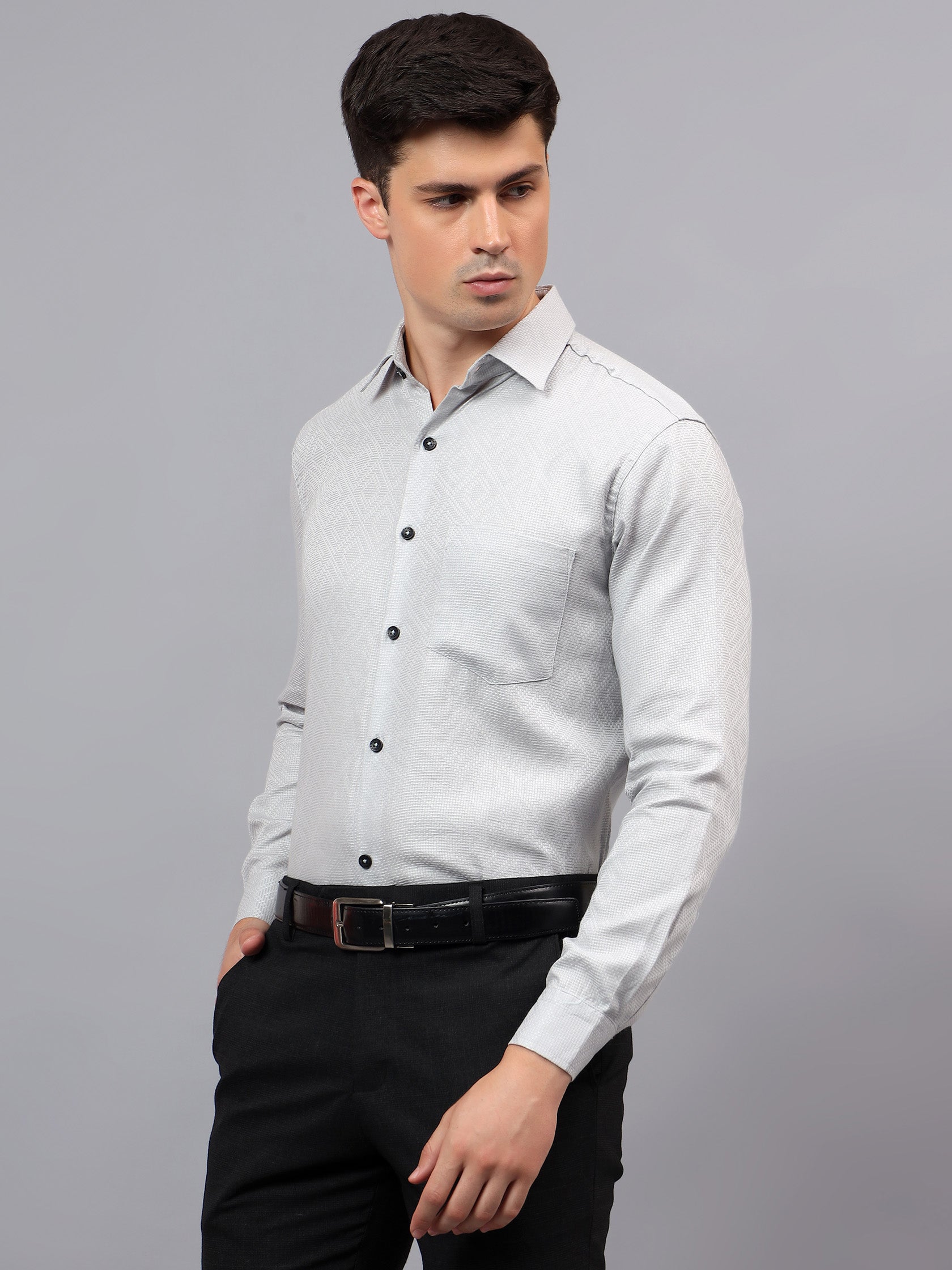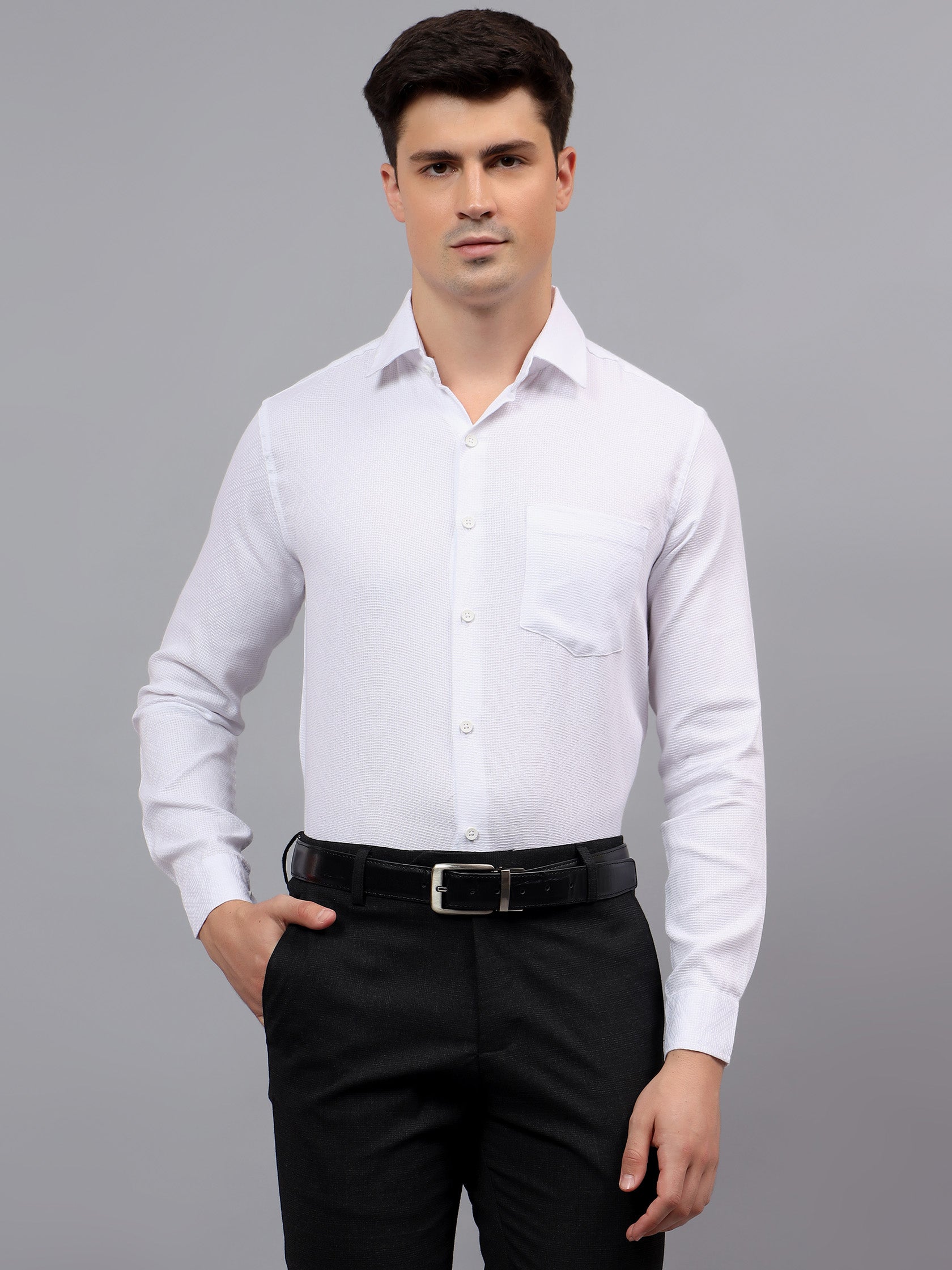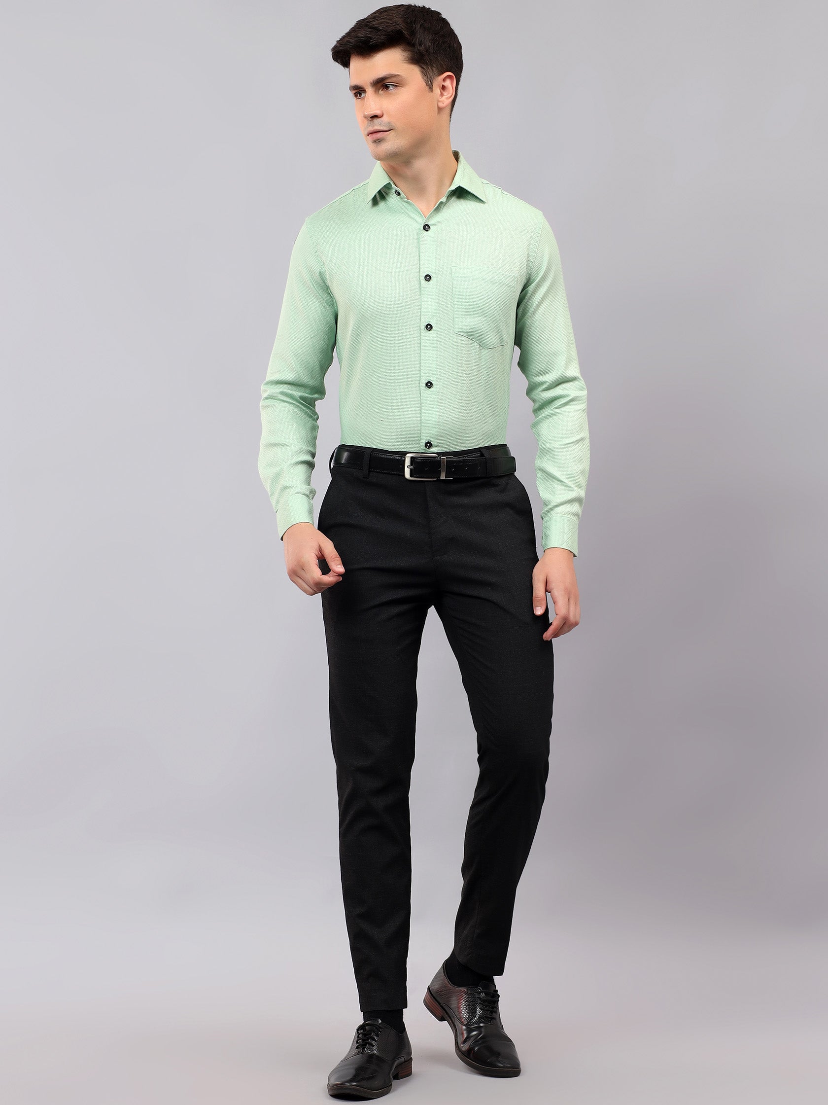 Upgrade your wardrobe with the Apektra Men's Regular Fit Full Sleeve Shirt, designed for both casual and semi-formal occasions. Crafted from a premium cotton, this shirt offers superior comfort, breathability, and durability. The sleek solid color with a stylish geometric pattern adds a touch of sophistication to your look.