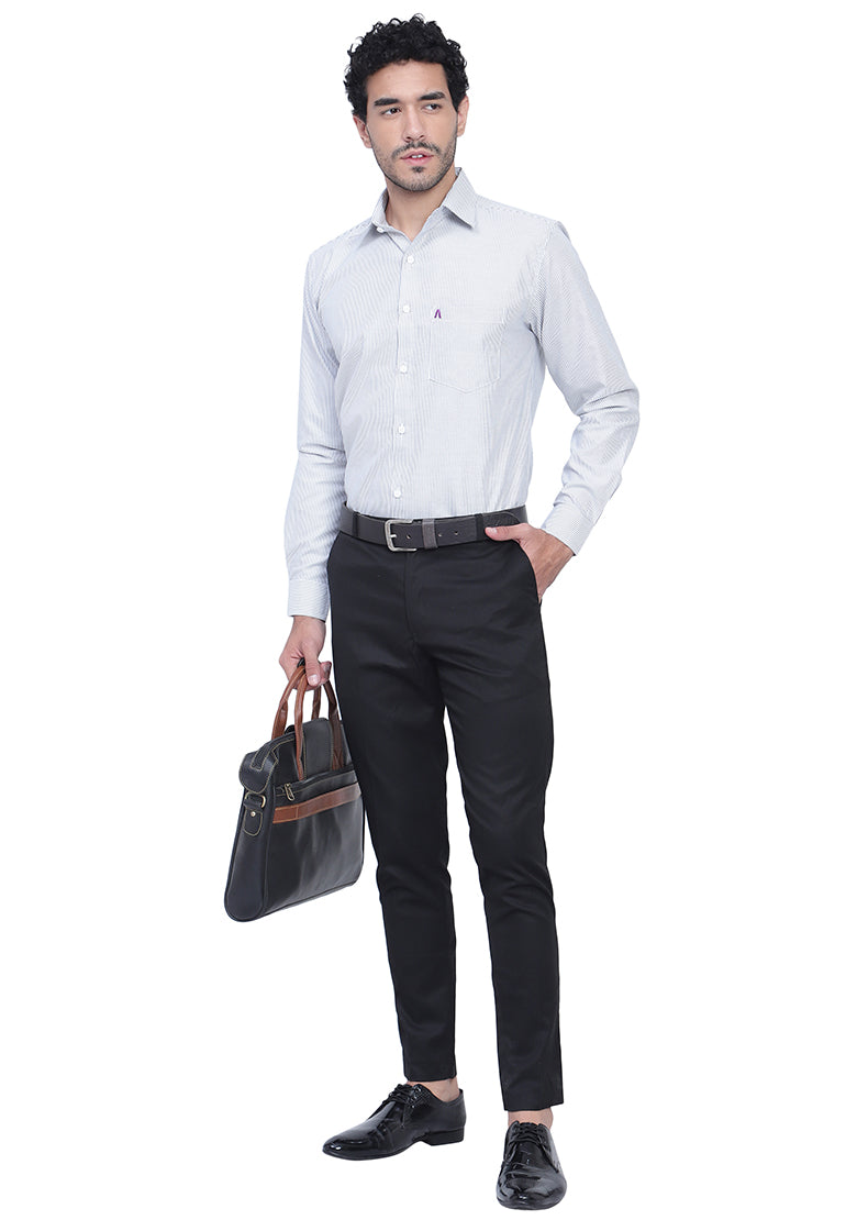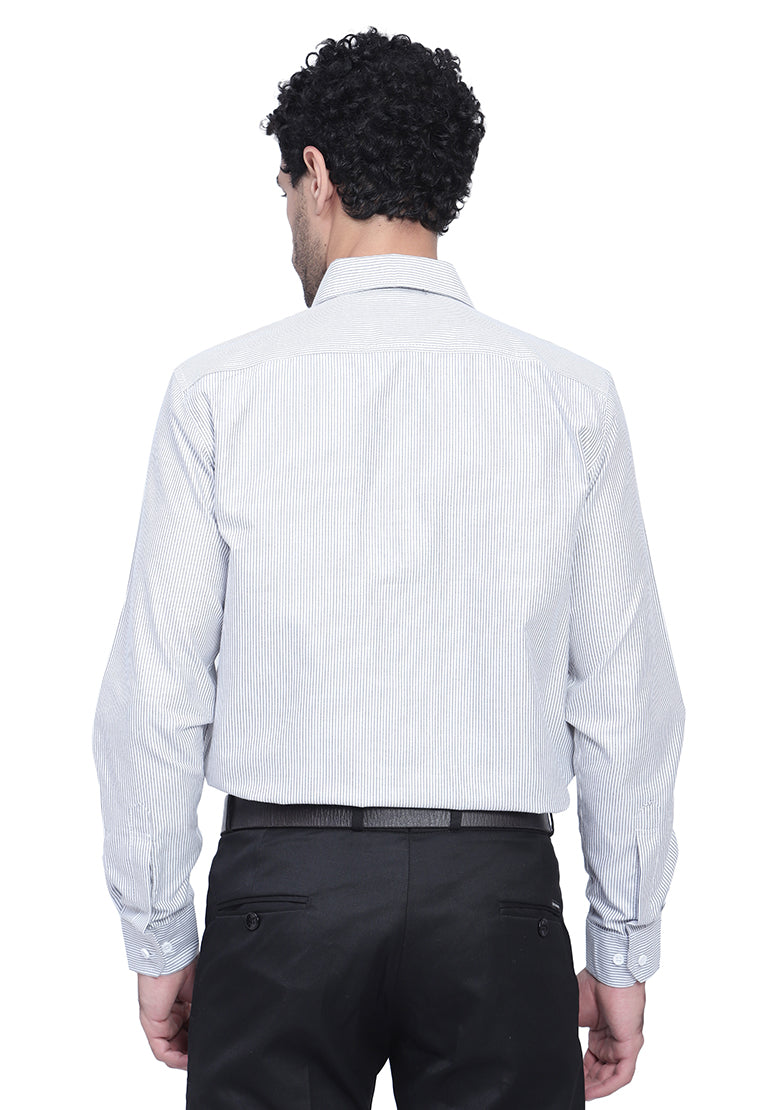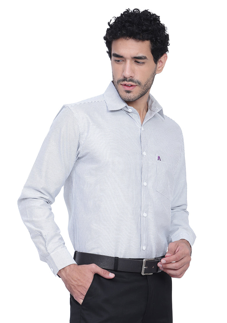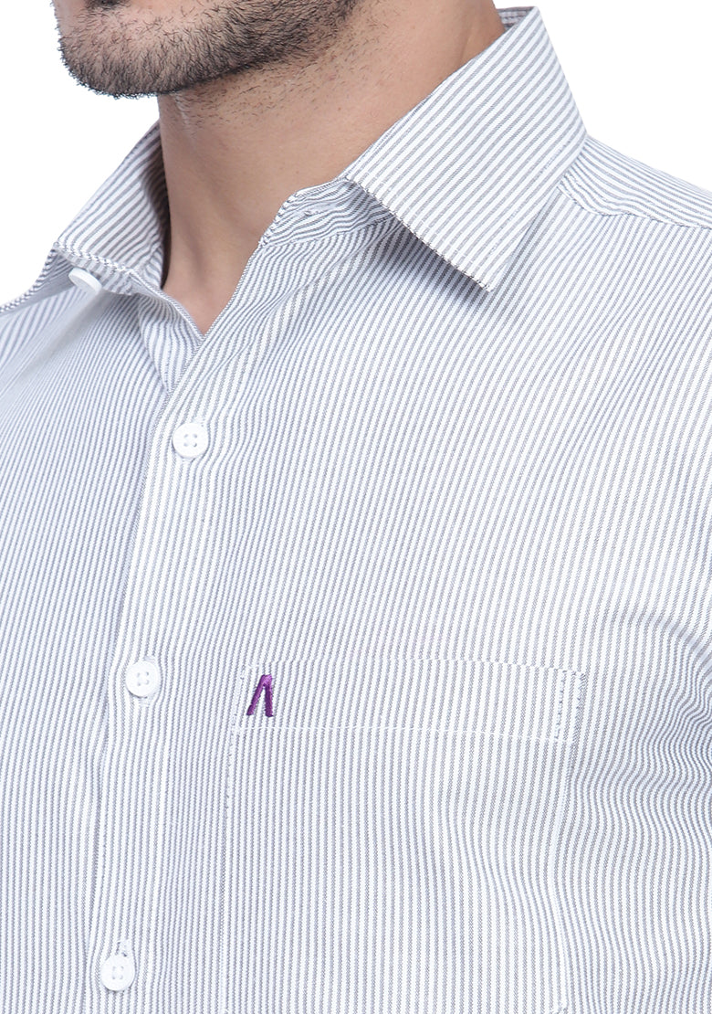 Men's Cotton Blend Fabric Full Sleeve Light Grey Strip Shirt
