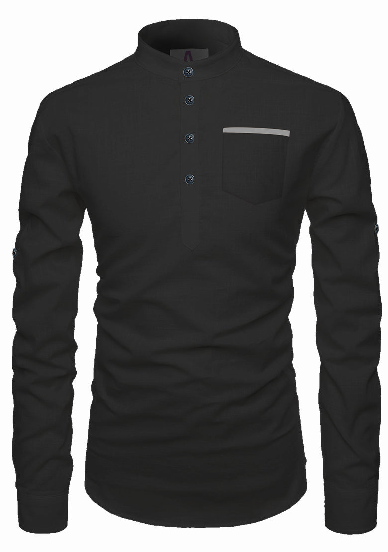 πŸ‘” Elevate your style with our Black Slim Fit Kurta featuring a contrast design on placket & pocket. Perfect for any occasion!