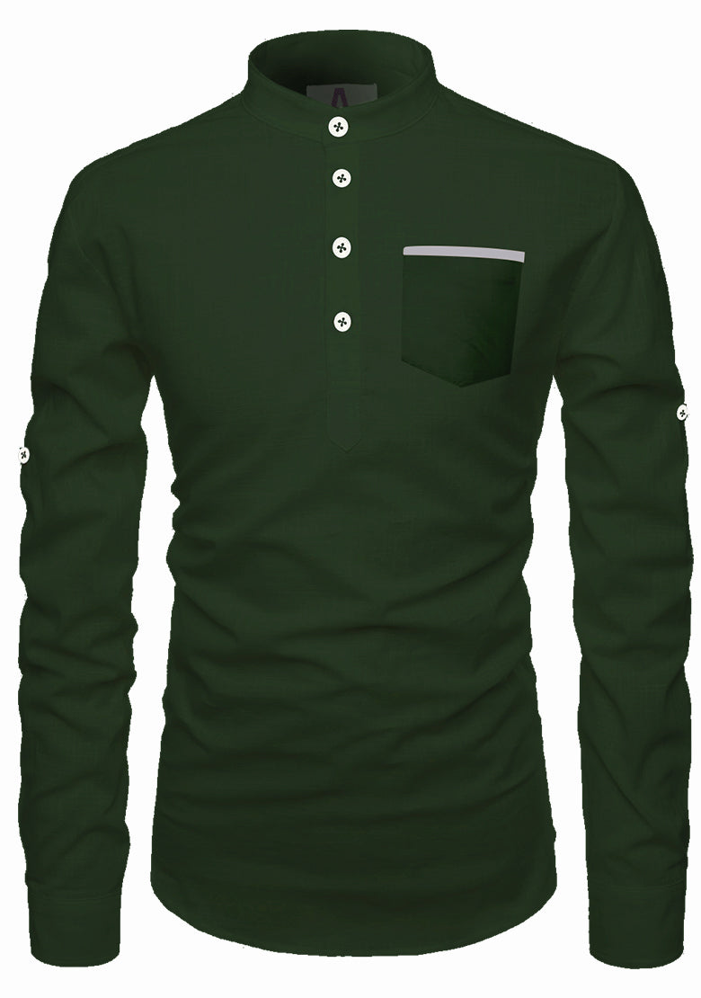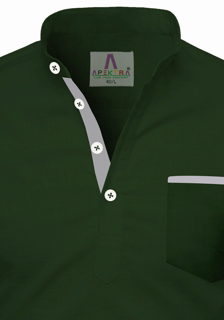 πŸ‘” Elevate your style with our Green Slim Fit Kurta featuring a contrast design on placket & pocket. Perfect for any occasion!