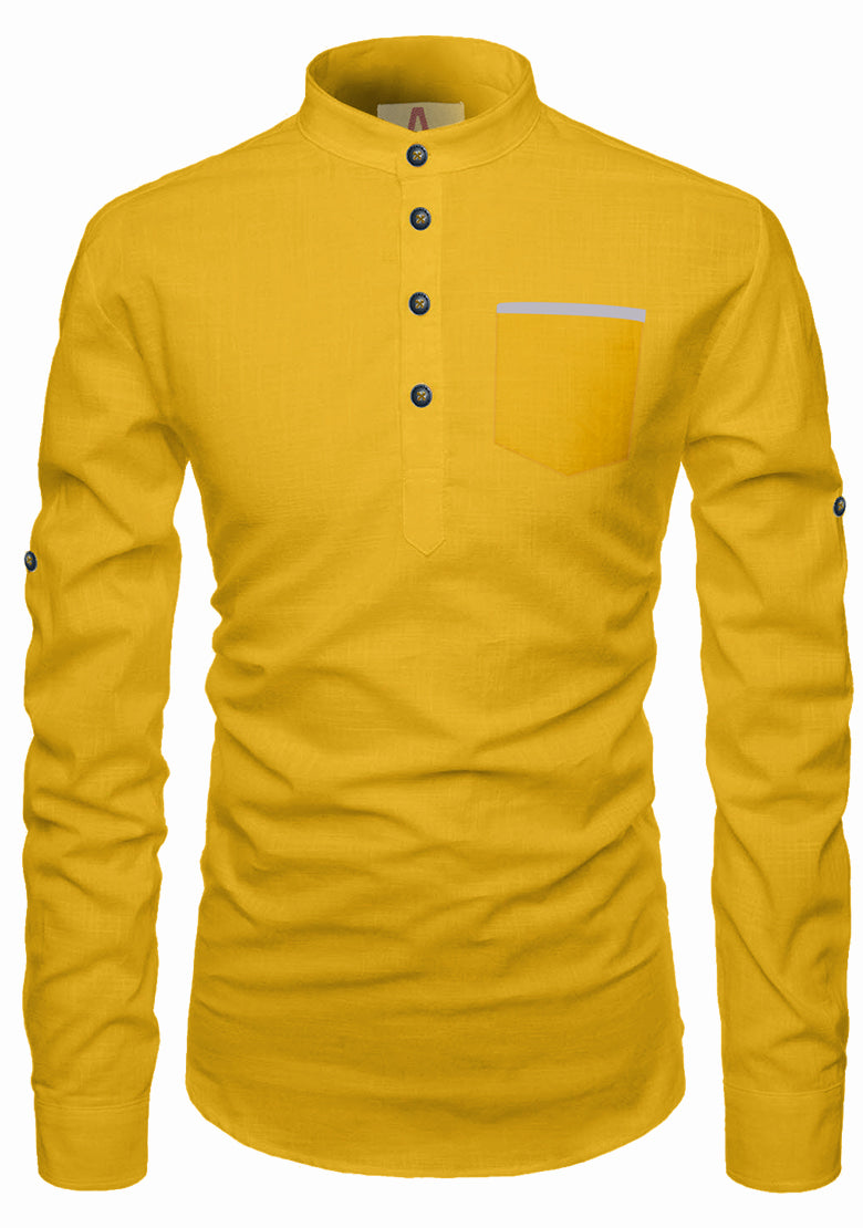 πŸ‘” Elevate your style with our YellowΒ Slim Fit Kurta featuring a contrast design on placket & pocket. Perfect for any occasion!