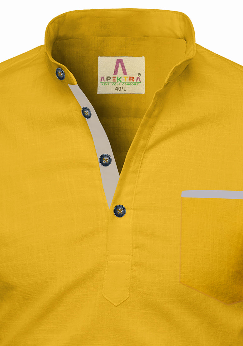 Men's Cotton Fabric Contrast Design Yellow Kurta