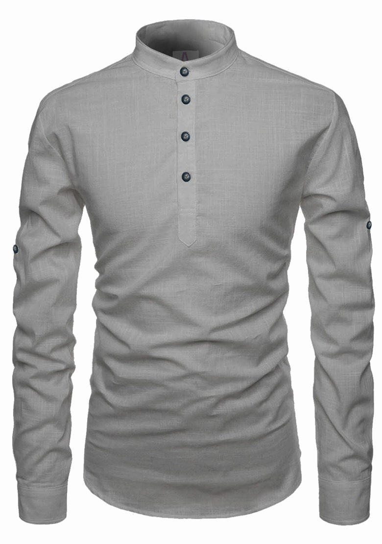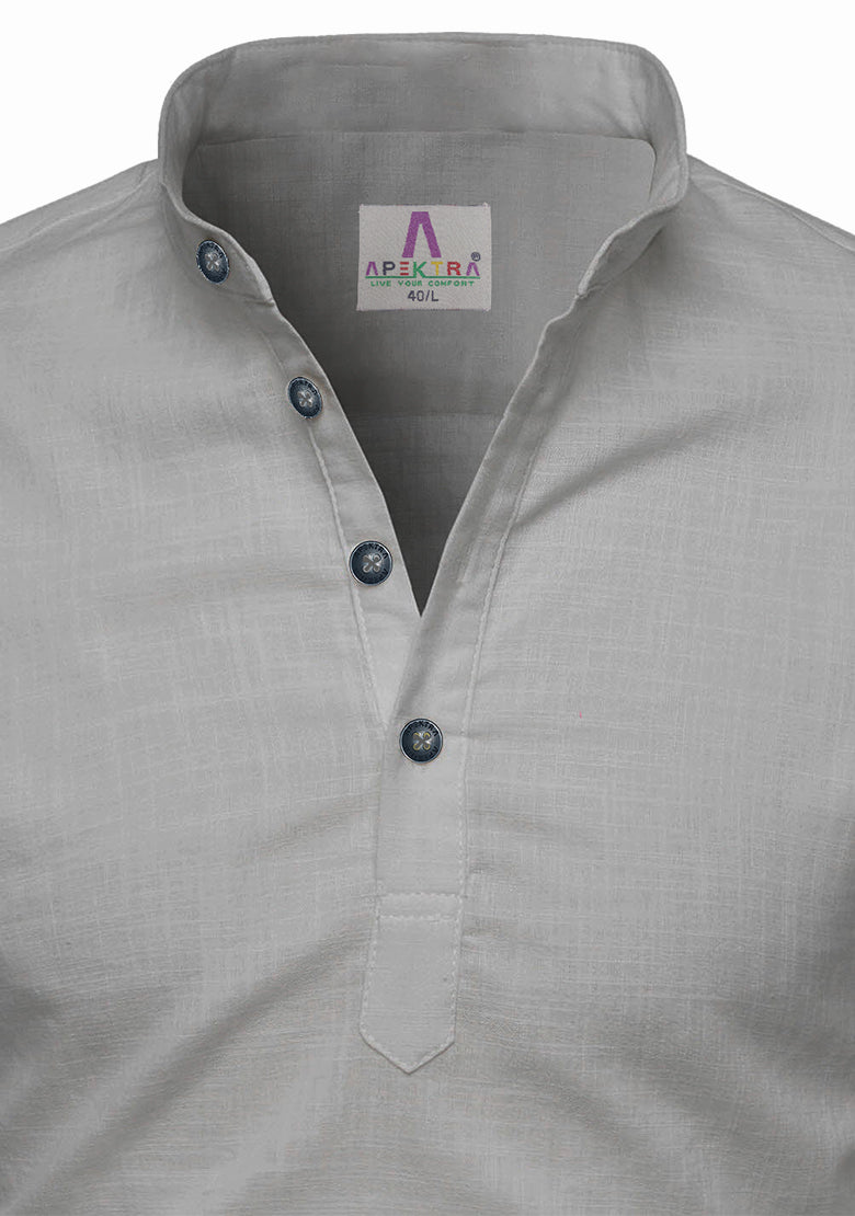 Men's Cotton Fabric Roll Up Sleeve Grey Kurta