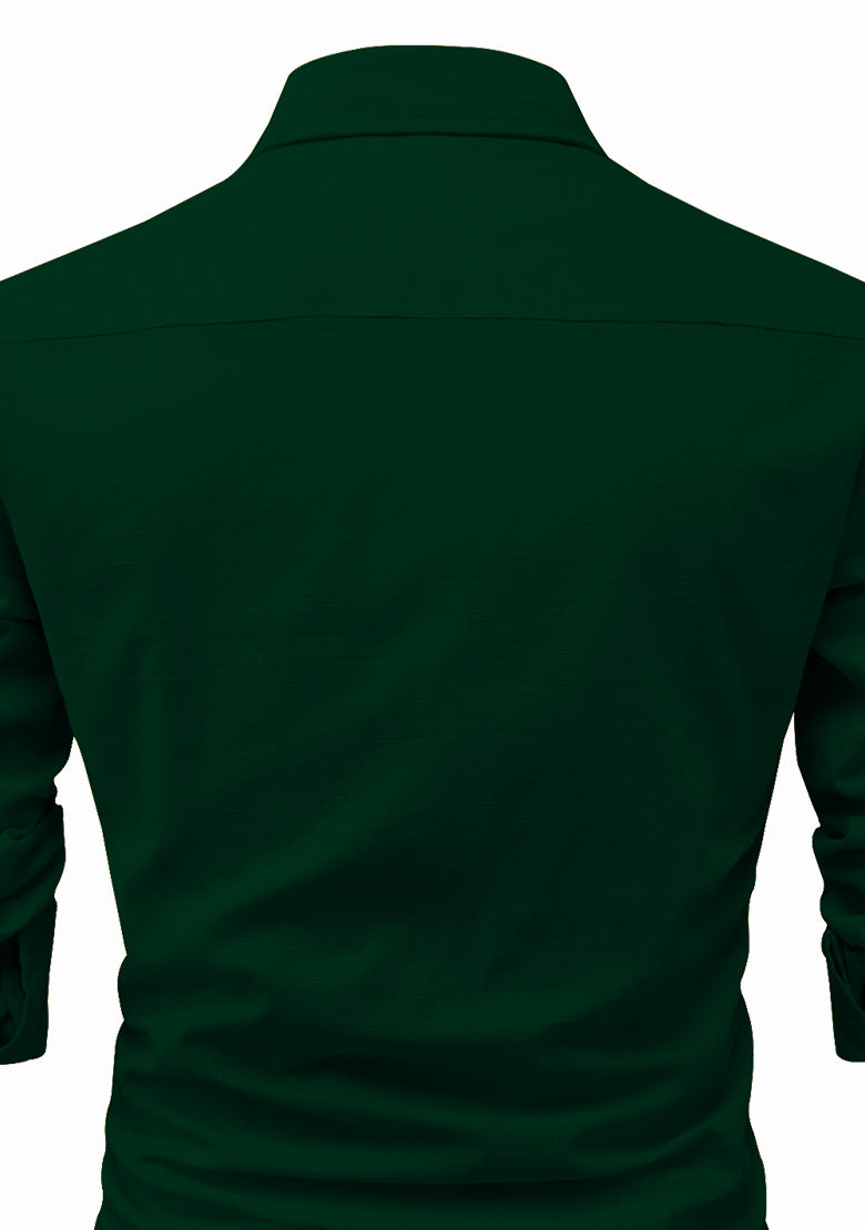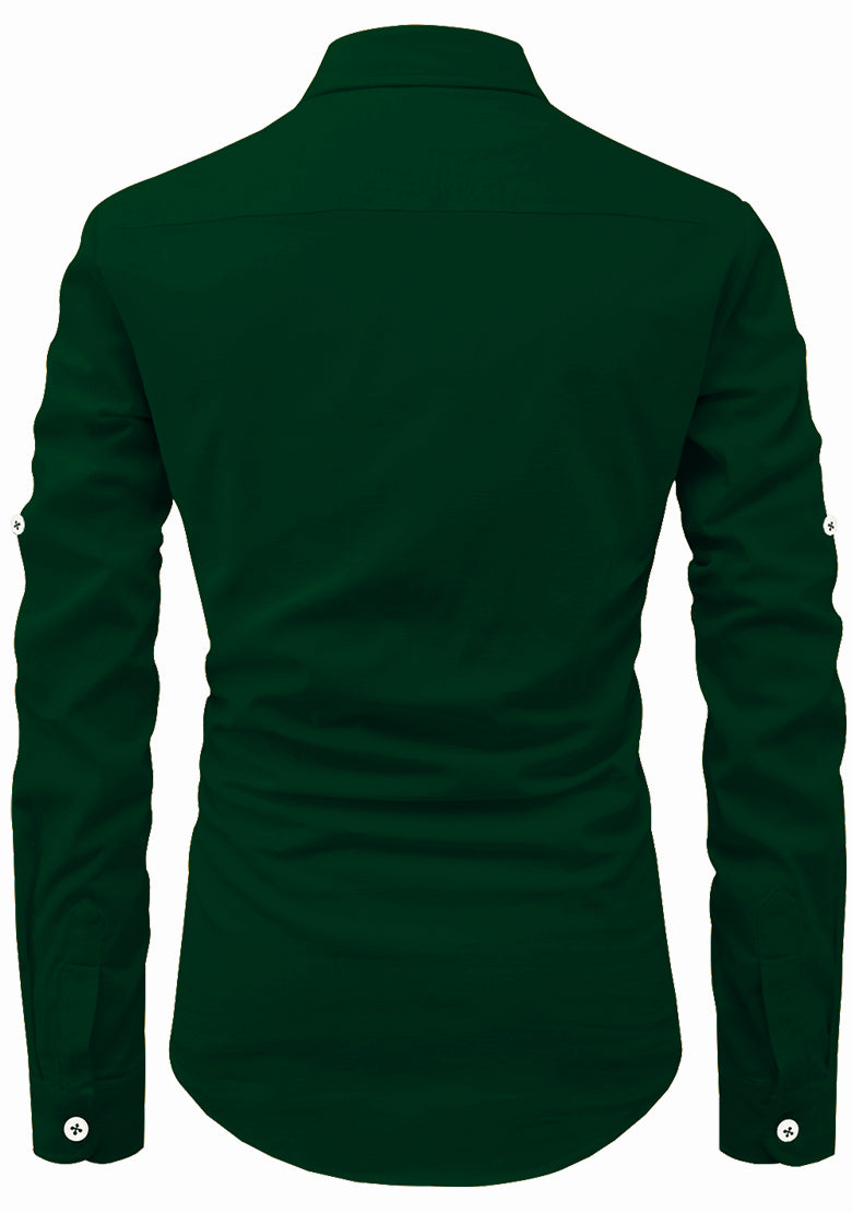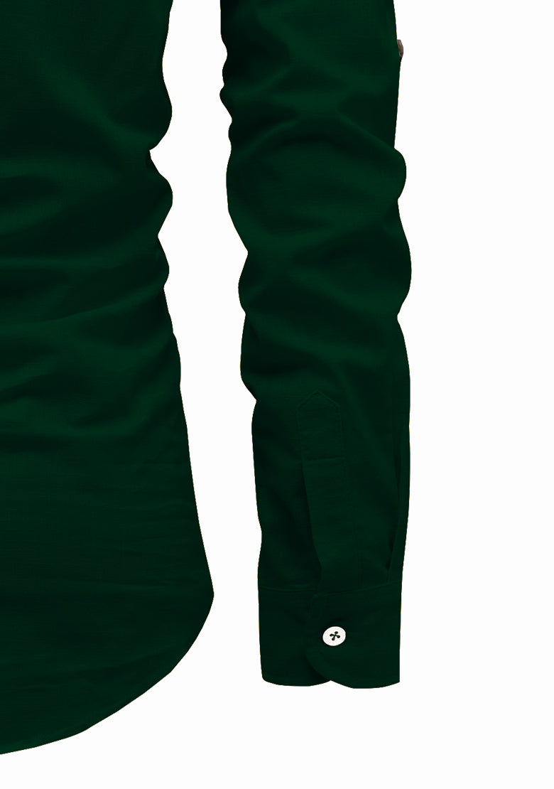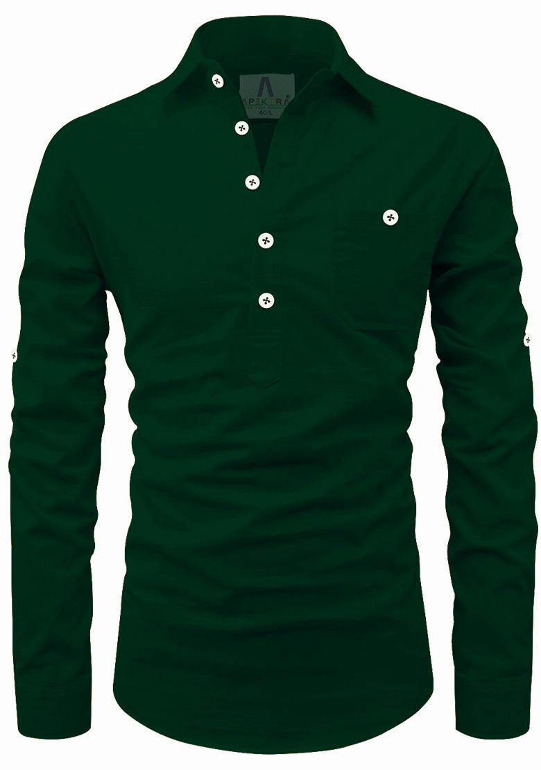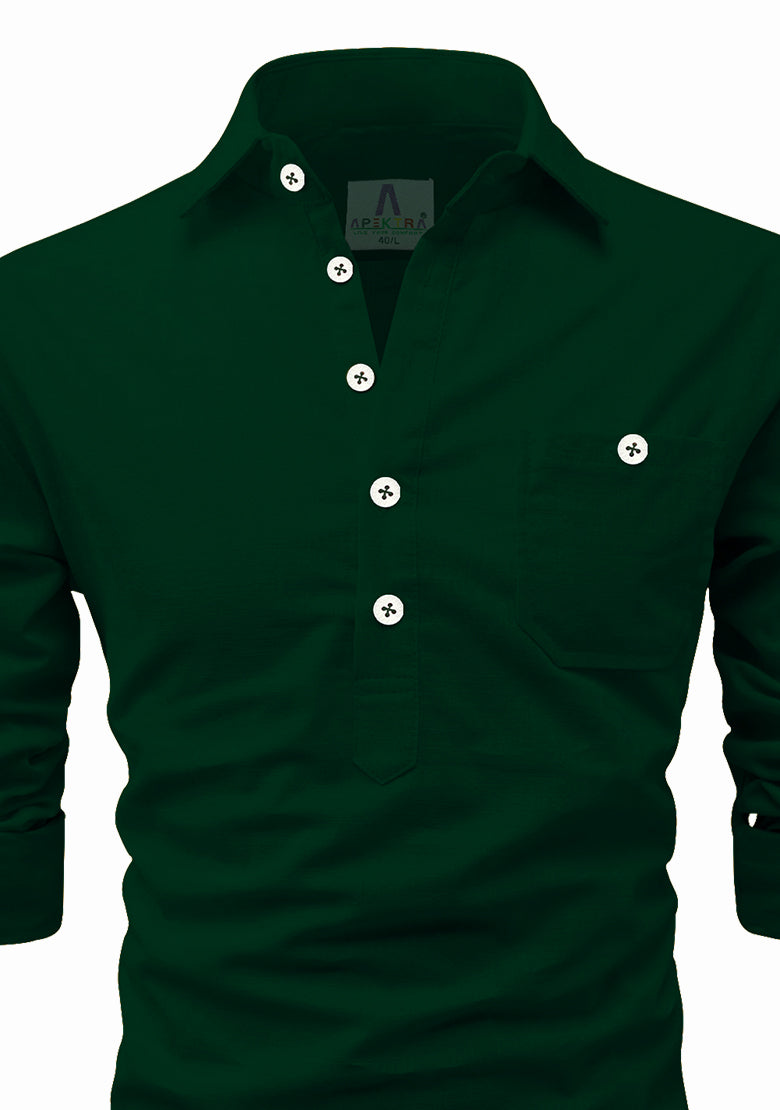 Men's Cotton Fabric Roll Up Sleeve Spread Collar Green Kurta