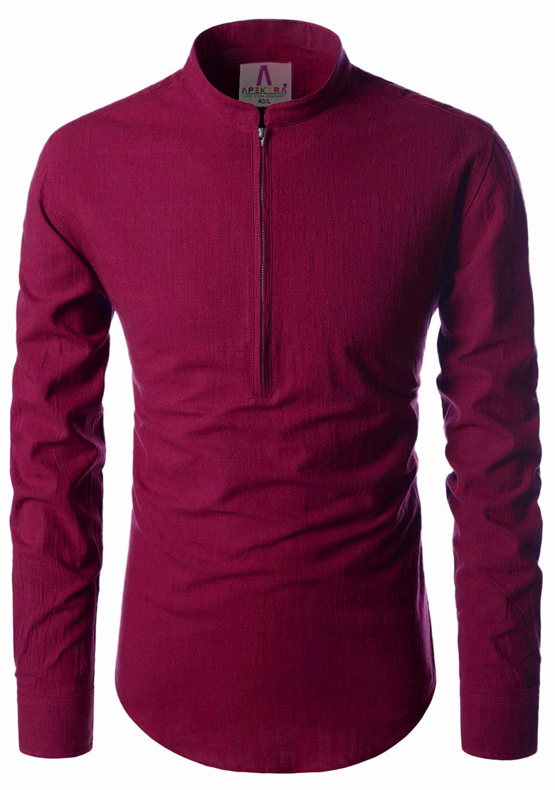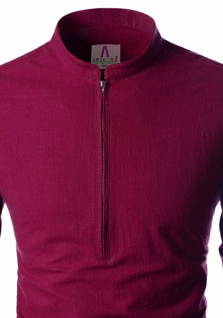 Men's Cotton Fabric Zip Closer Maroon Kurta