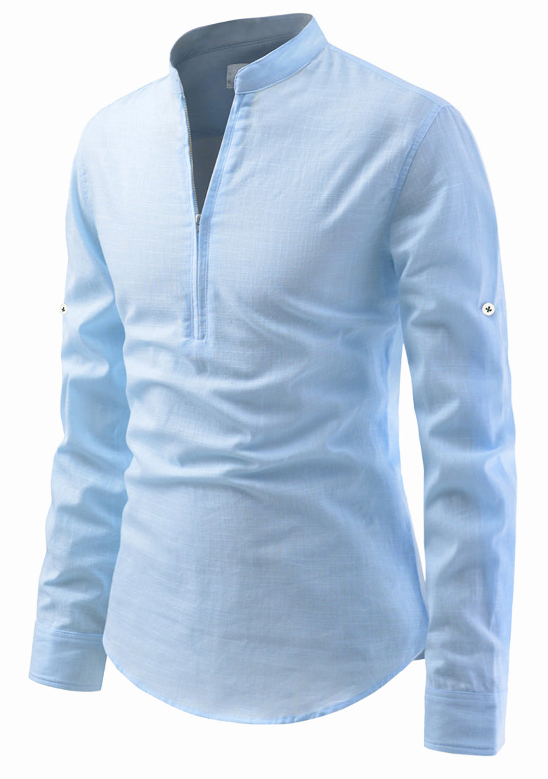 Men's Cotton Fabric Zip Closer Sky Blue Kurta