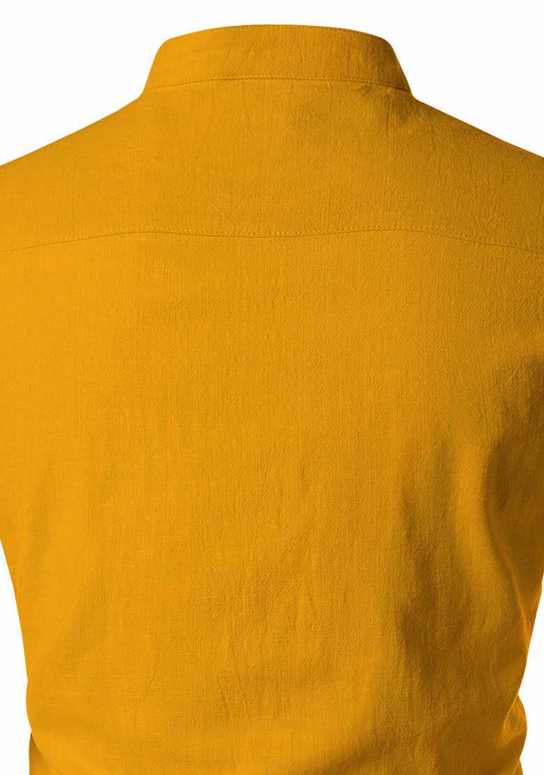 Men's Cotton Fabric Zip Closer Yellow Kurta